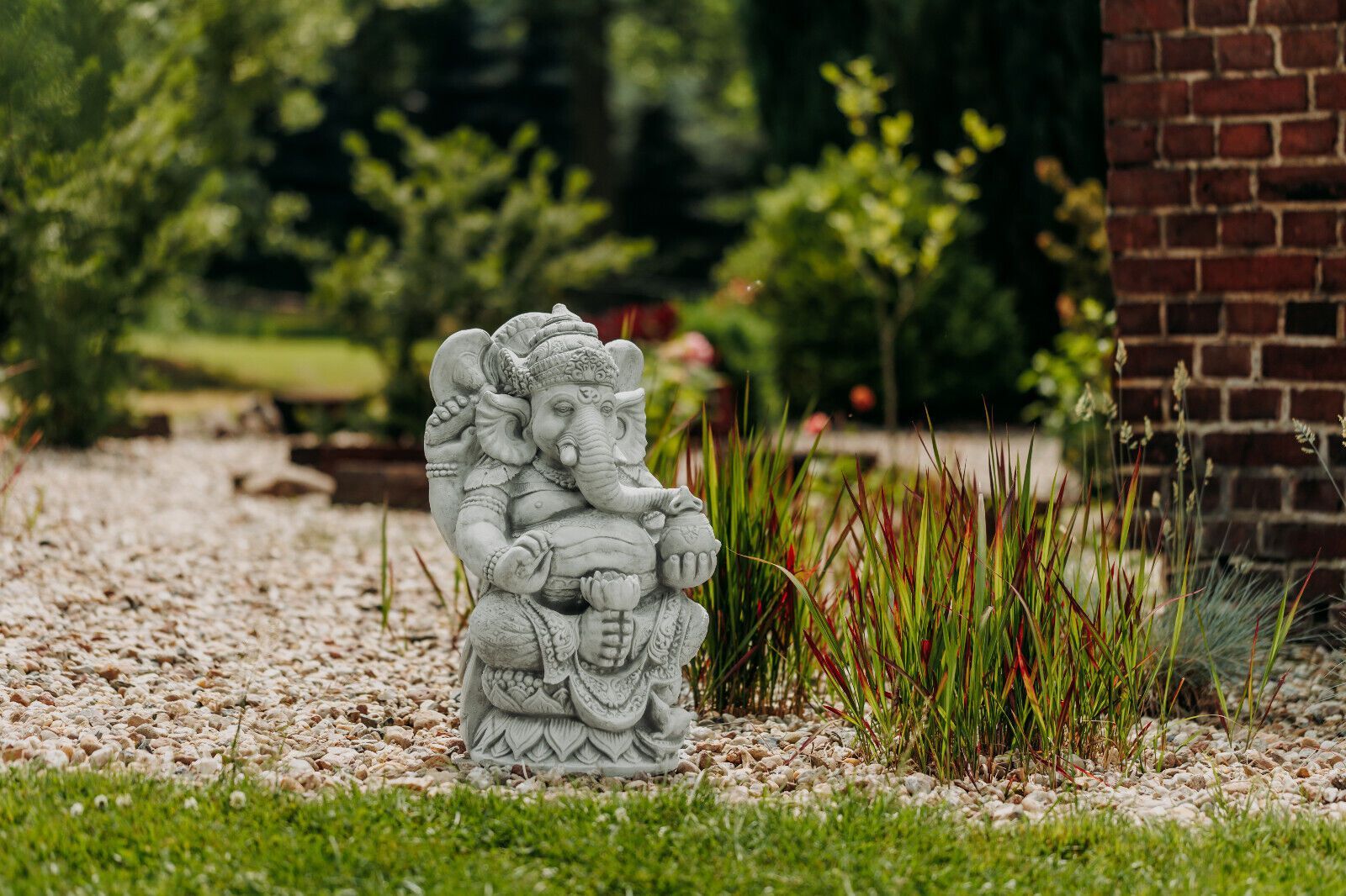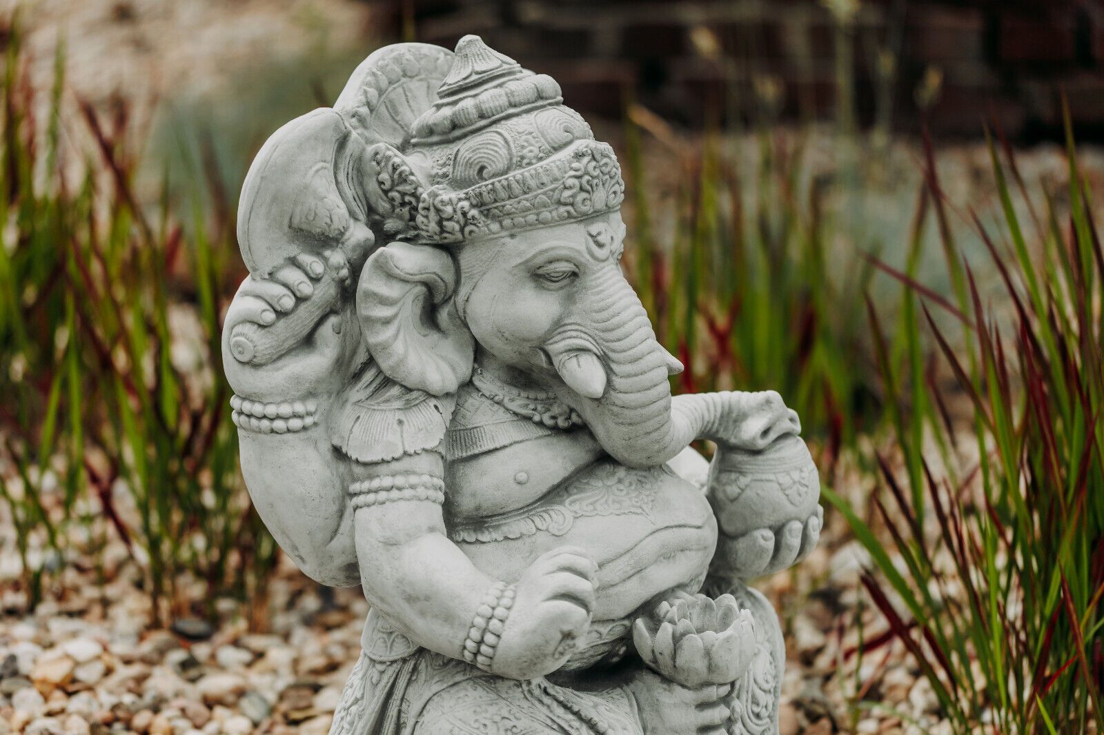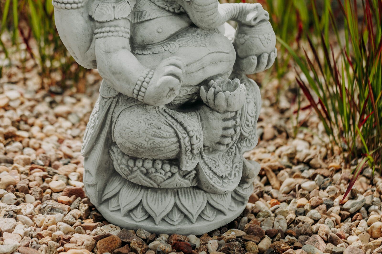 Große massive Stein Ganesha Statue der Göttliche Buddha aus Steinguss frostfest