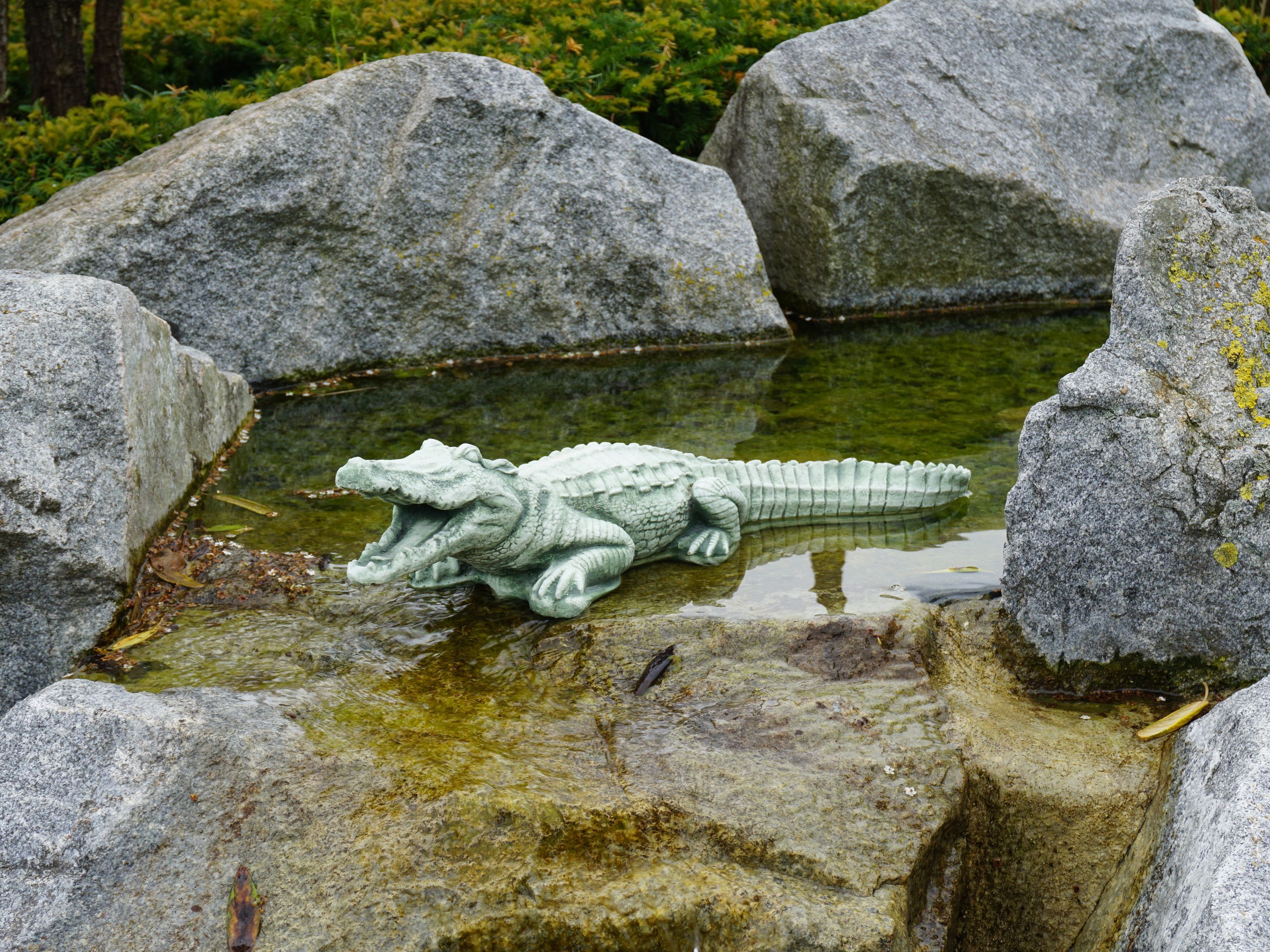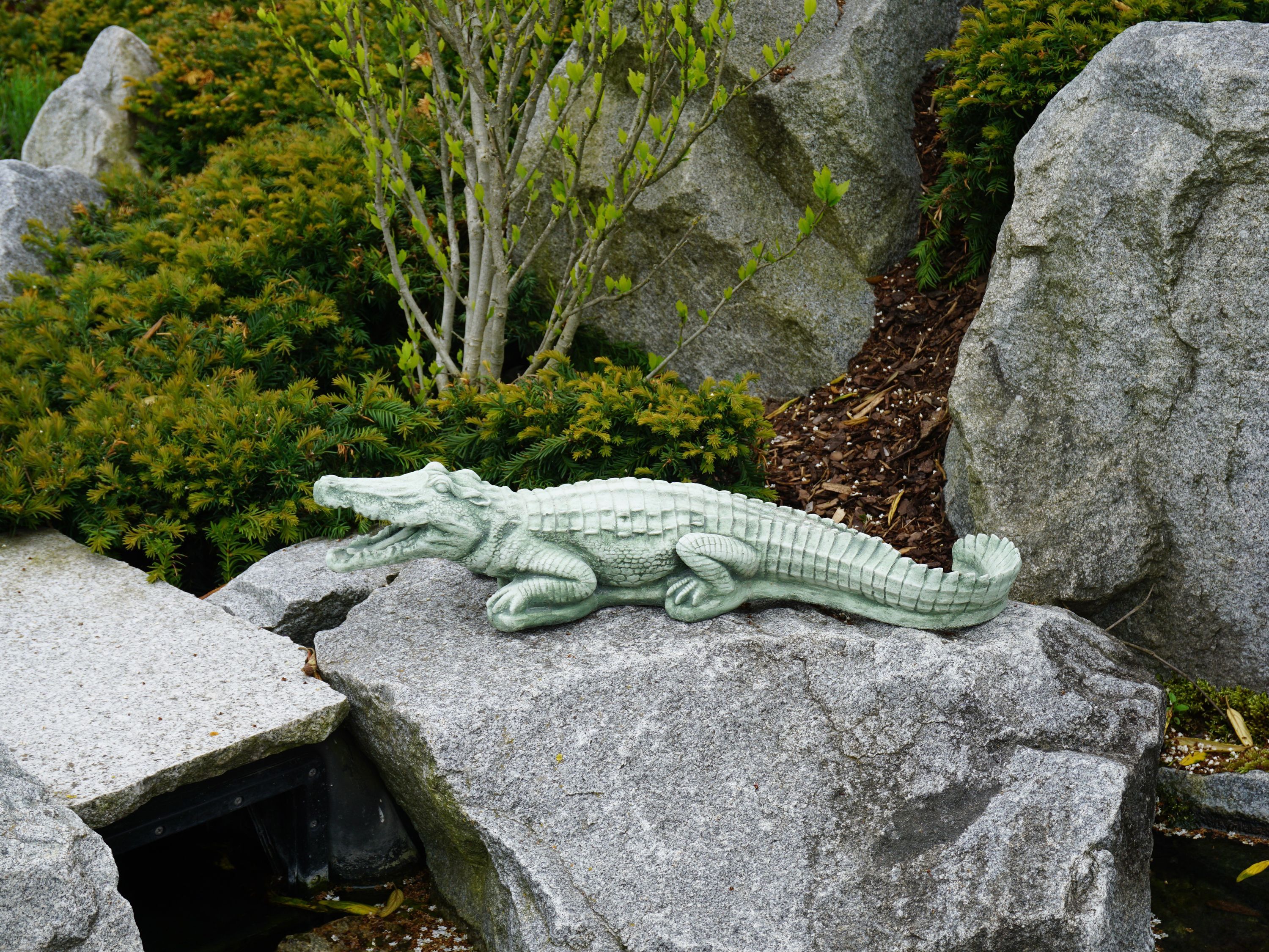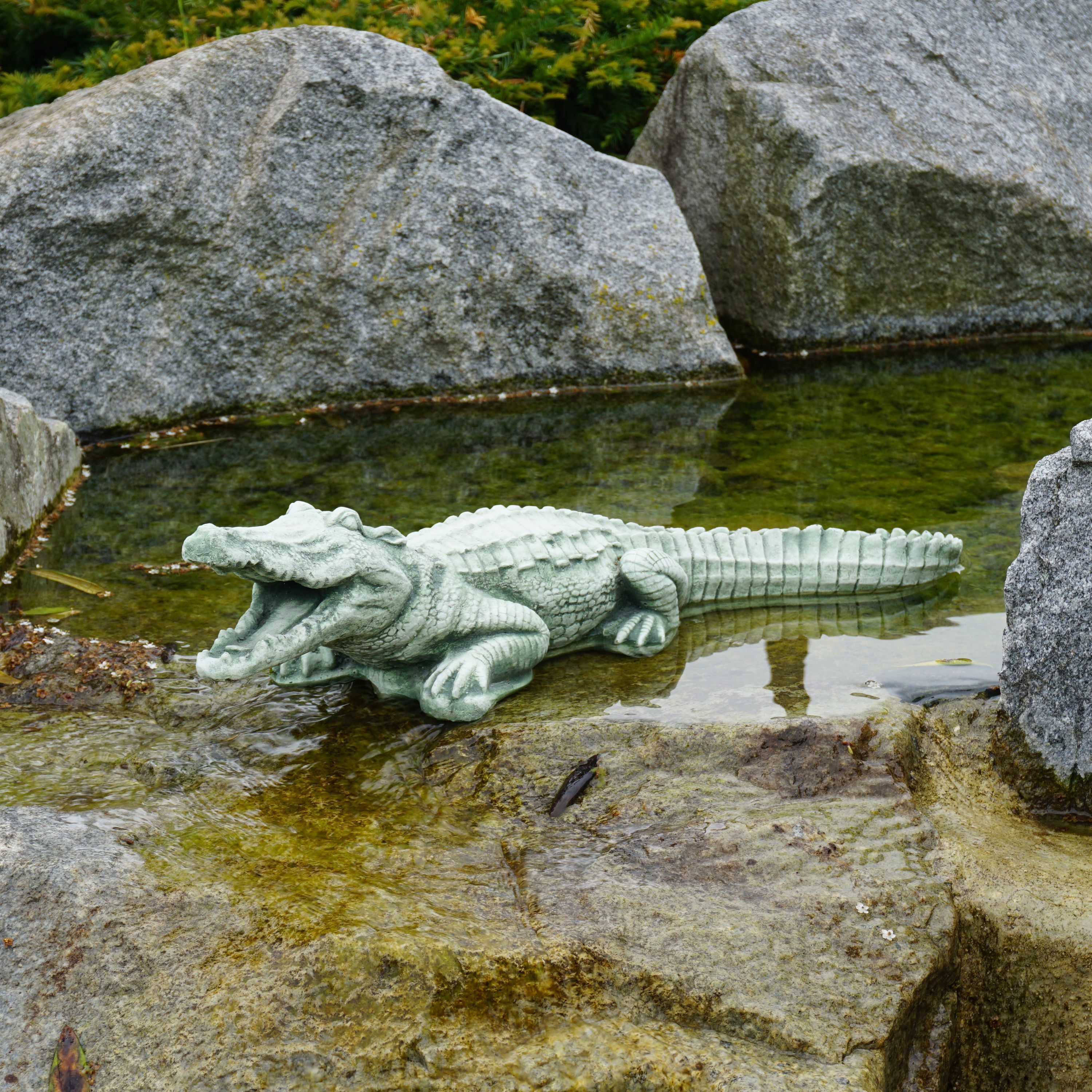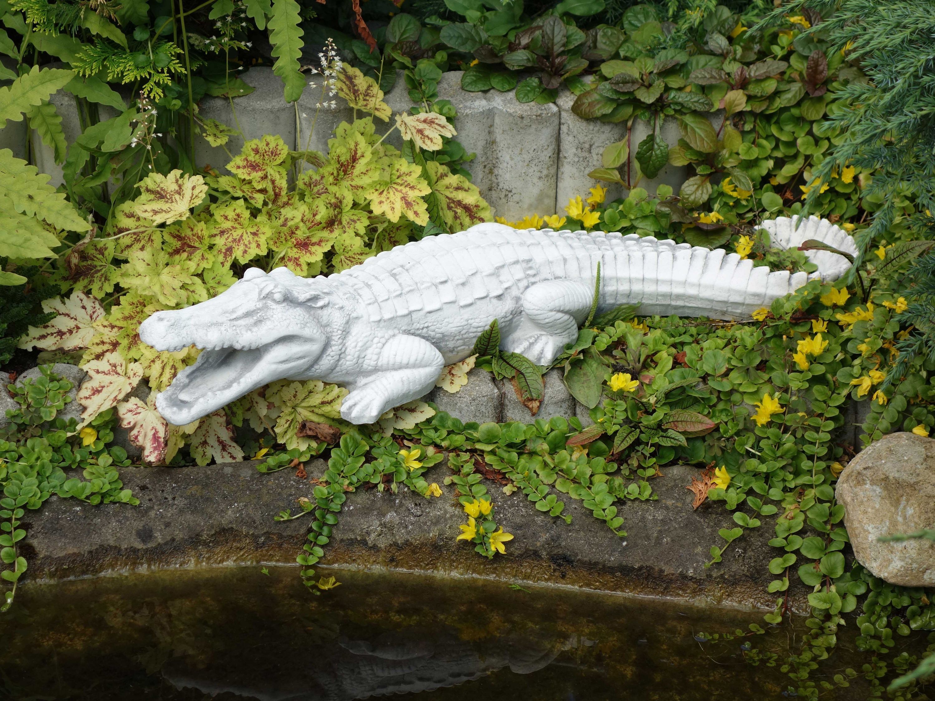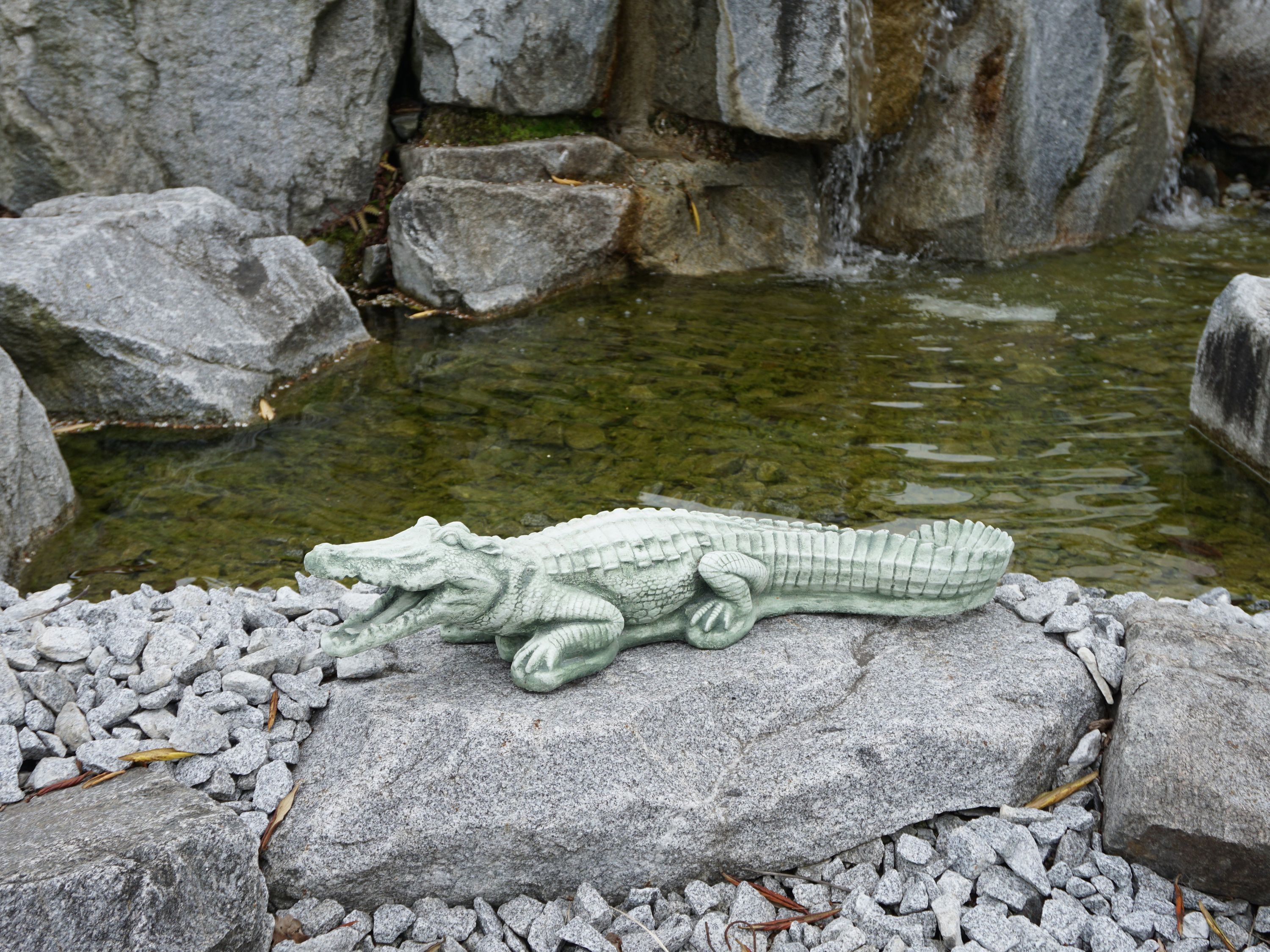 Große massive Steinfigur Krokodil Gartendeko Raumdeko aus Steinguss frostfest