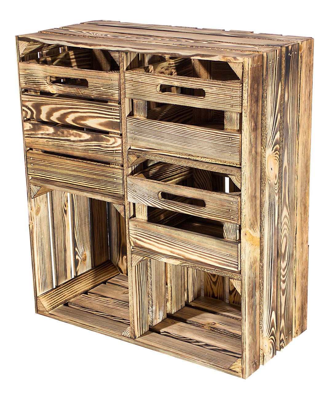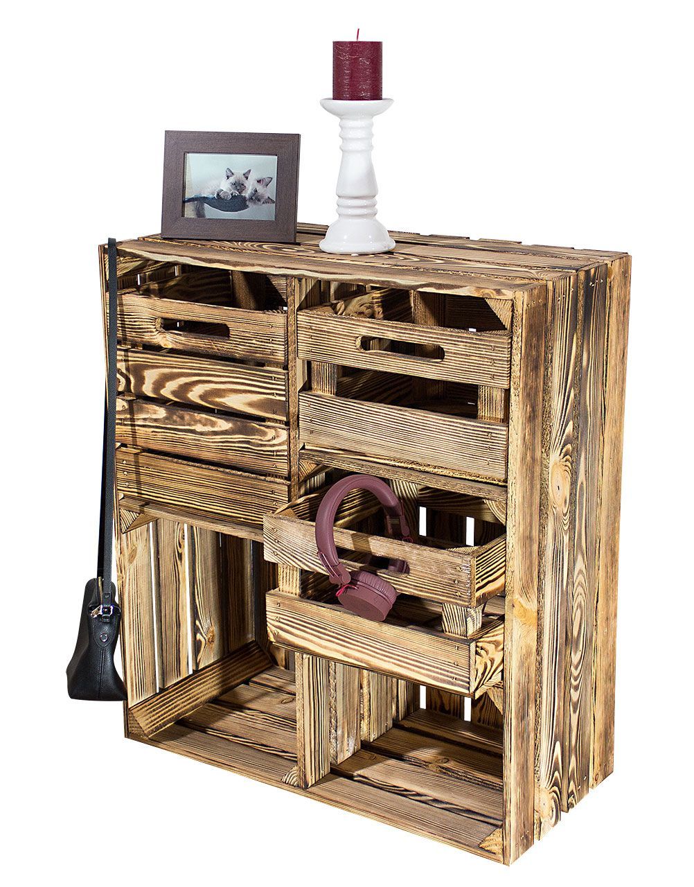 große Regalkiste HS3 geflammt mit Schubladen Schuhregal Kommode Holzkiste Weinkis