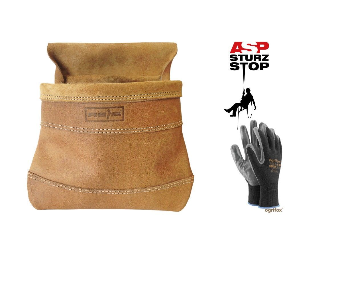 Große Robuste Leder Nageltasche Werkzeugtasche natur inkl. Arbeitshandschuhe
