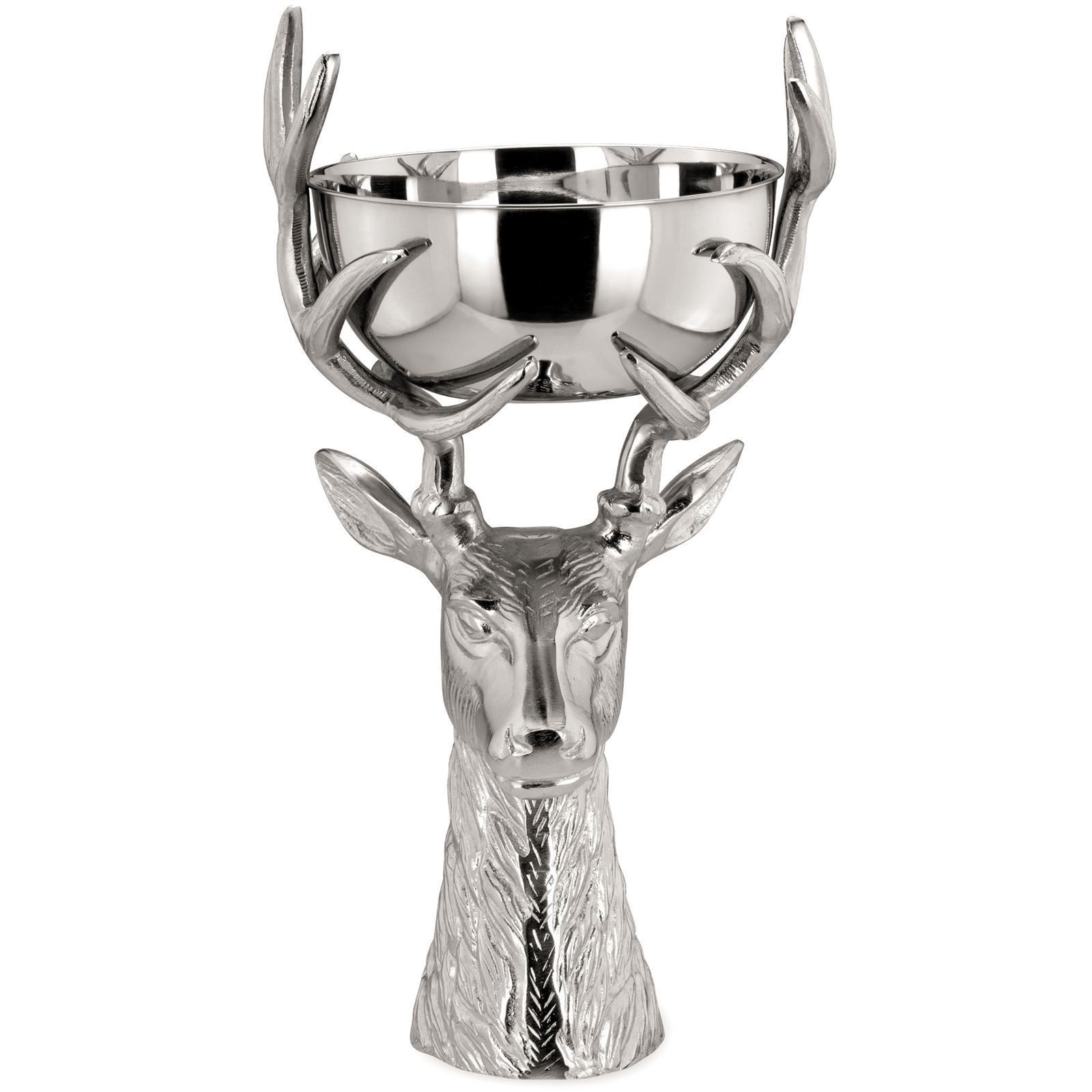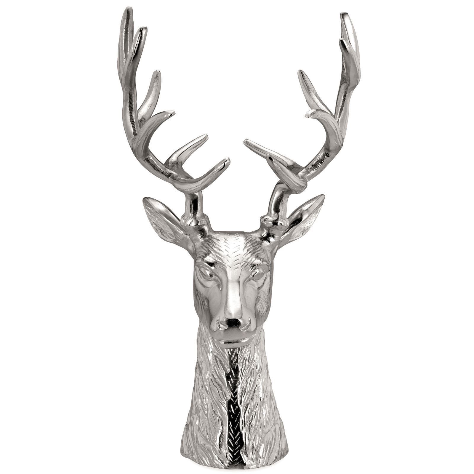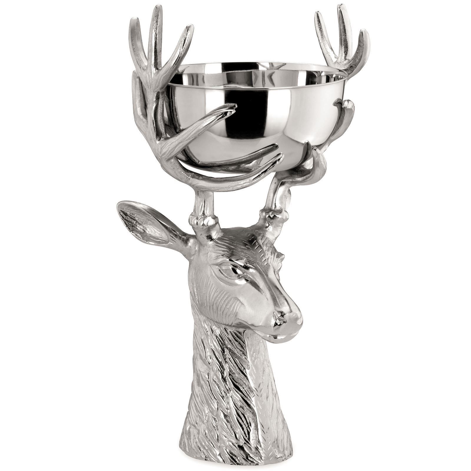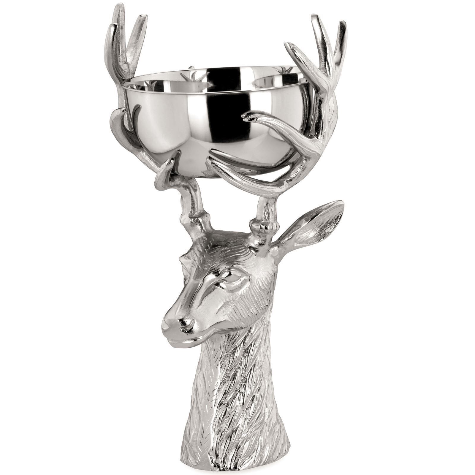 große runde Edelstahl Dekoschale Motiv Hirschkopf Alu 49 cm hoch