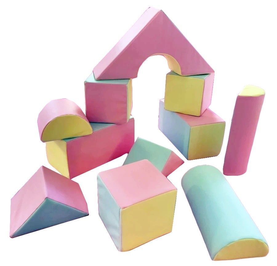 Große Schaumstoffbausteine - 11 Stück - farbig - pink, blau, gelb (Pastell)