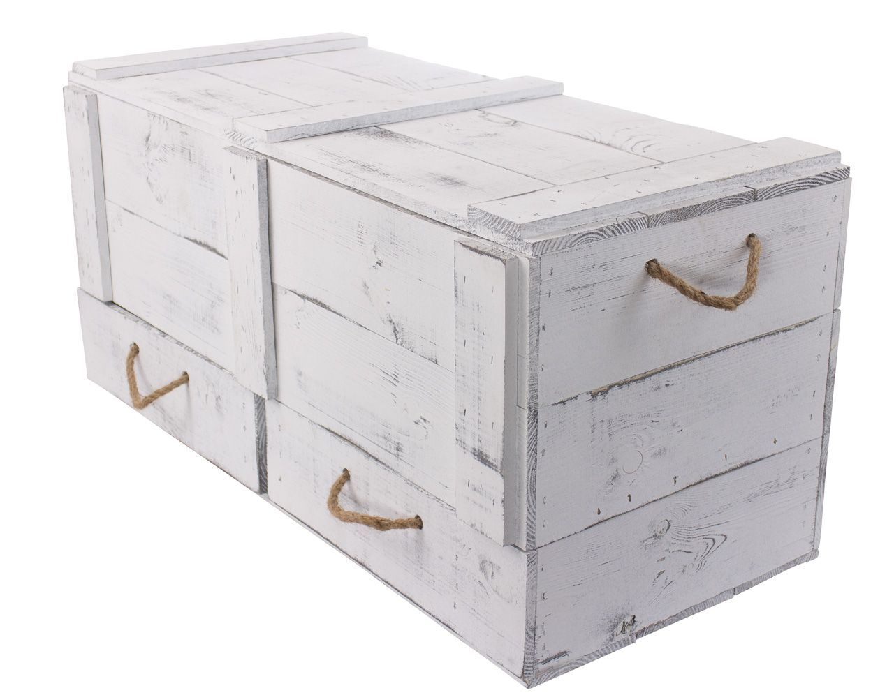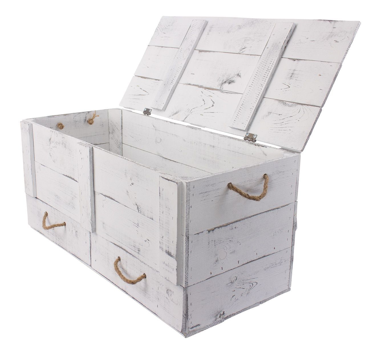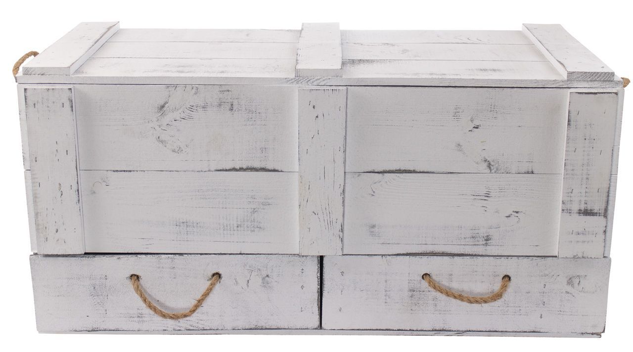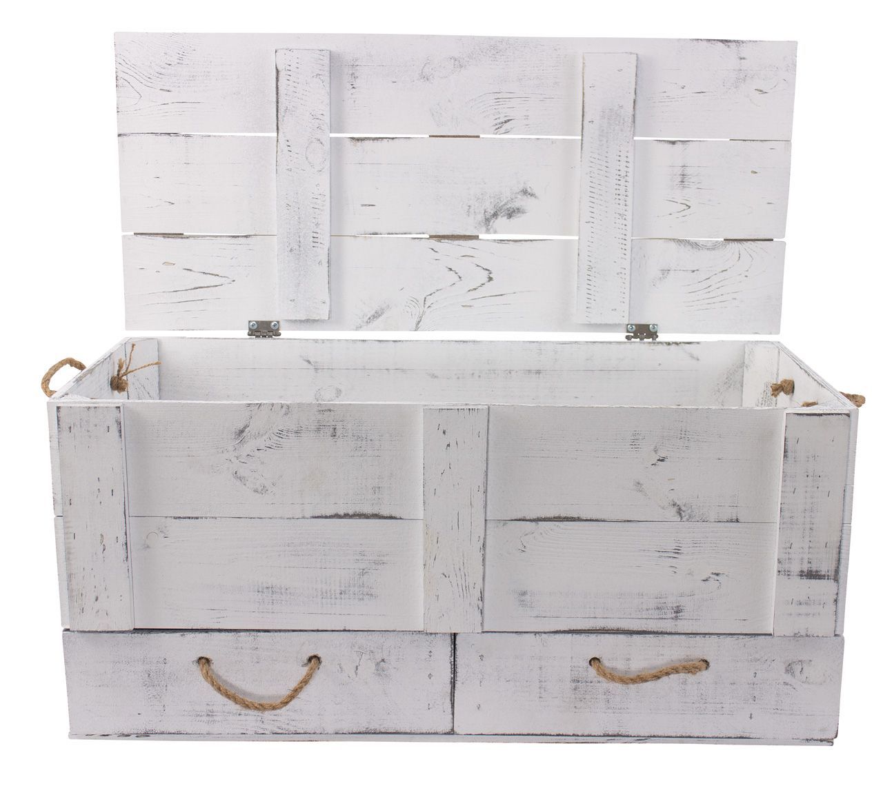 grosse shabby weiss Holztruhe Kalle mit Schubladen und Deckel
