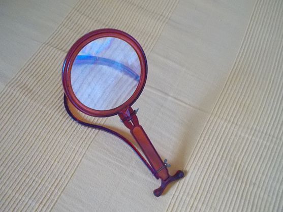 Große Standlupe, - Durchmesser vom Glas = 11 cm . Das Glas mit Gebrauchsspuren ( Kratzer ) Durch zwei Flügelmuttern ist der Neigungswinkel und der Standfuß der Lupe stufenlos einstellbar. Siehe auch das Bild,es ist Teil der Artikelbeschreibung. Versandrabatt mit anderen Artikeln wird angeboten. Port