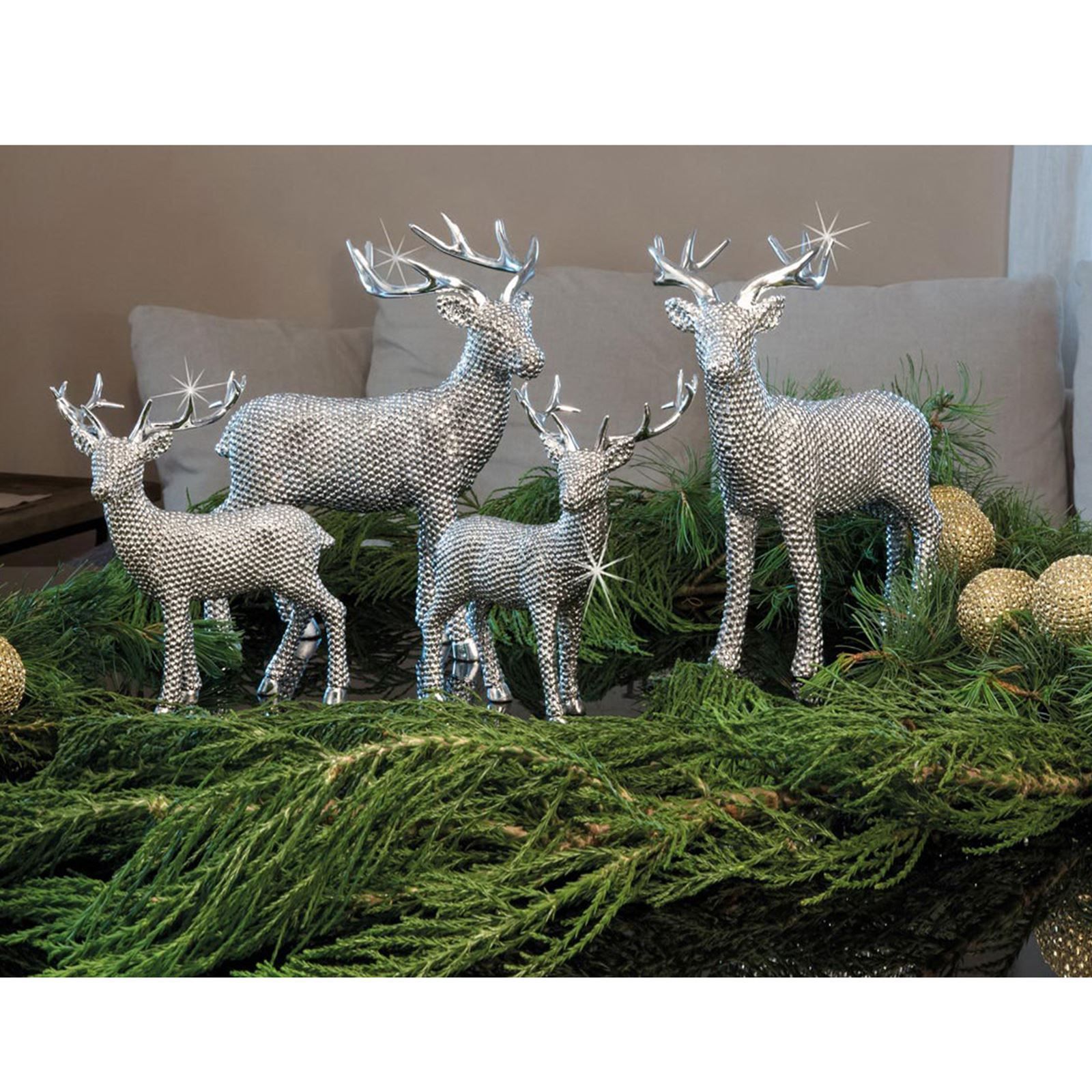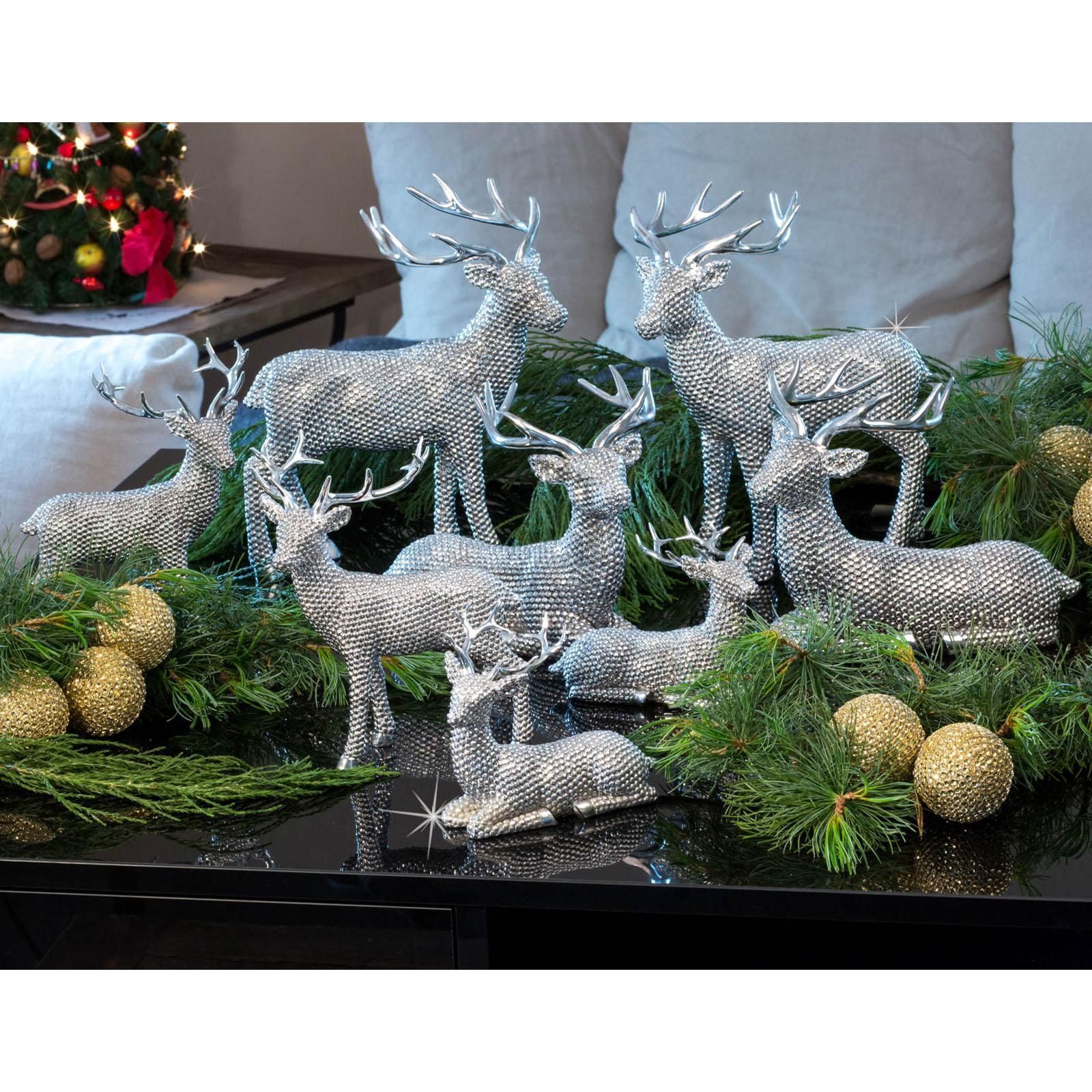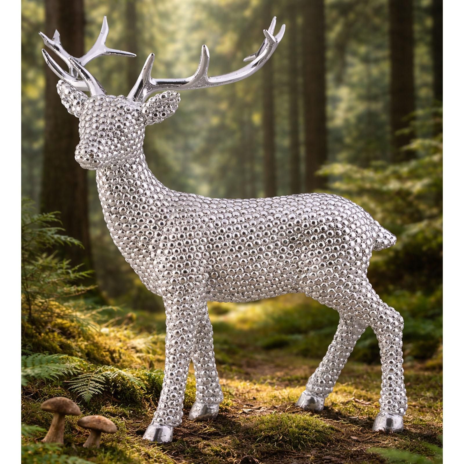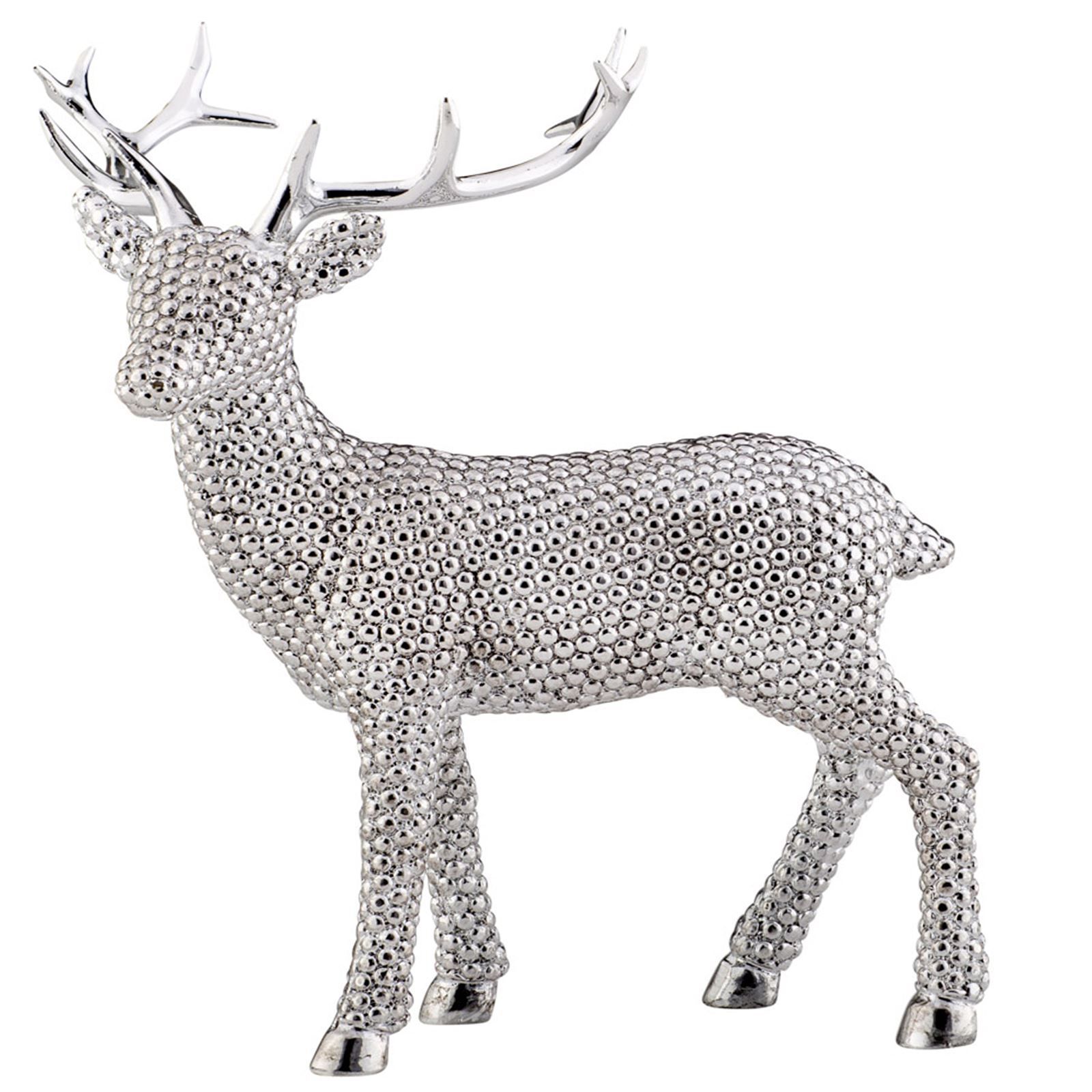 Große Stehende Silber Deko Rentier Figur & Geweih - Weihnachten Wildfigur 29 cm