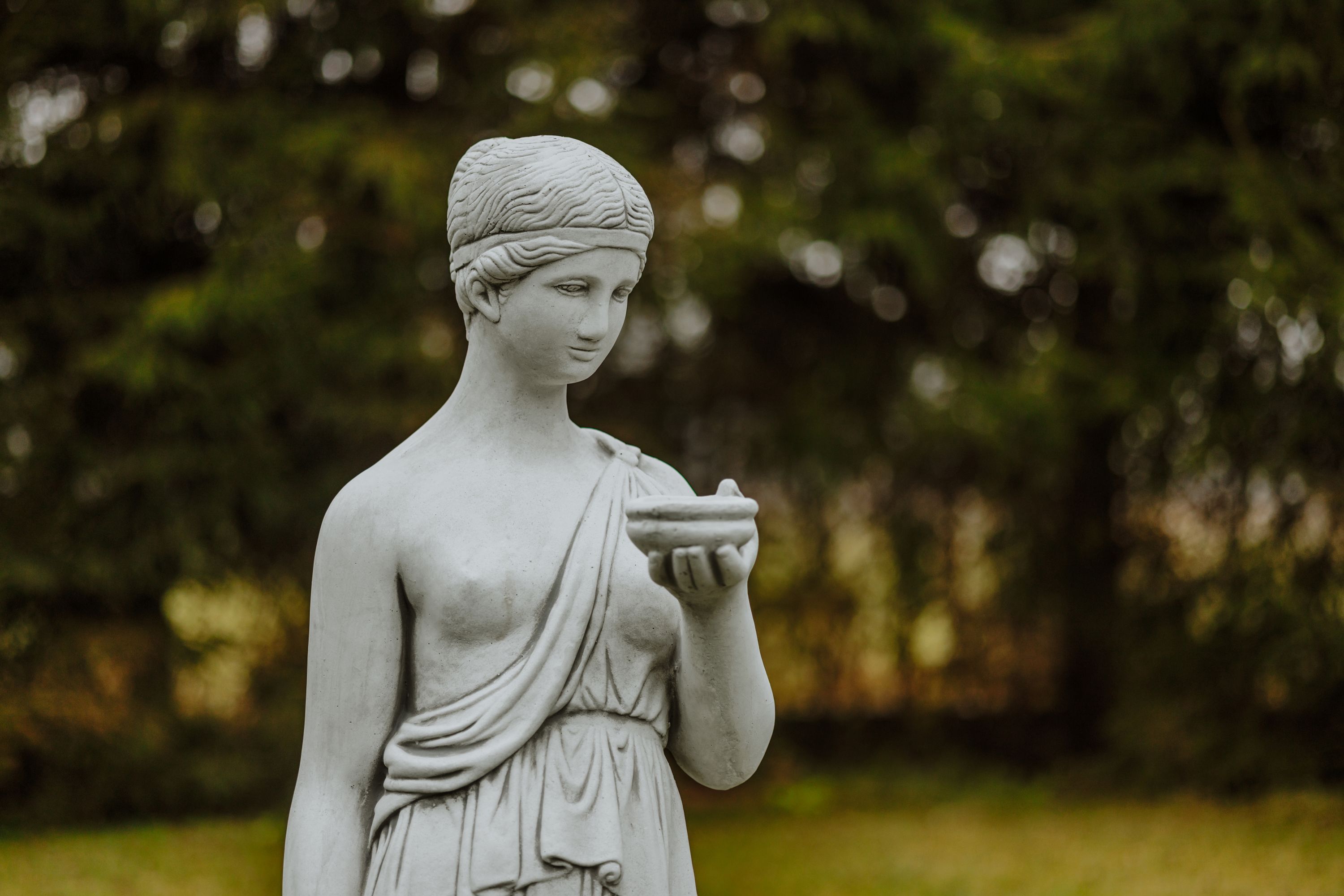 Große Steinfigur Statue Hestia griechische Mythologie aus Steinguss frostfest