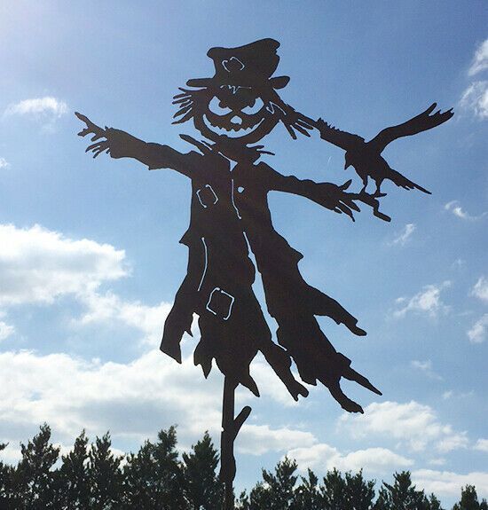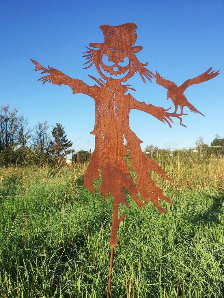 Große Vogelscheuche 80x67cm mit Erdspieß Rost Edelrost Gartenstecker Halloween