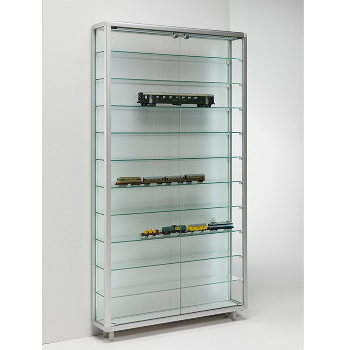 große Wandvitrine Alu Glas für Sammler abschließbar Spiegelrückwand 20 cm tief