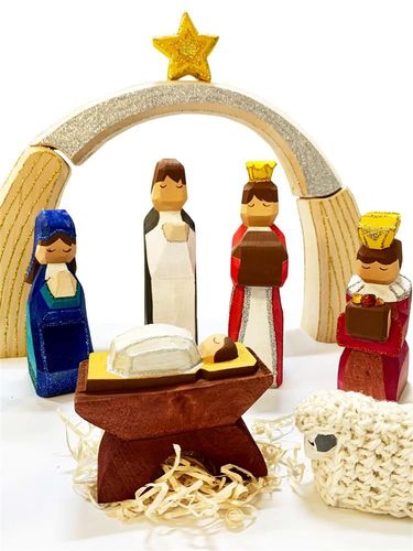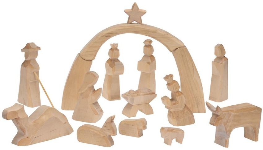 SUNNYSUE Große Weihnachtskrippe aus Pappelholz, 16 tlg