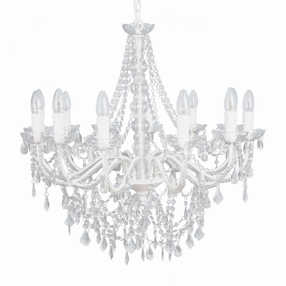 Großer 12-armiger Kronleuchter weiß mit Kristallen H70cm