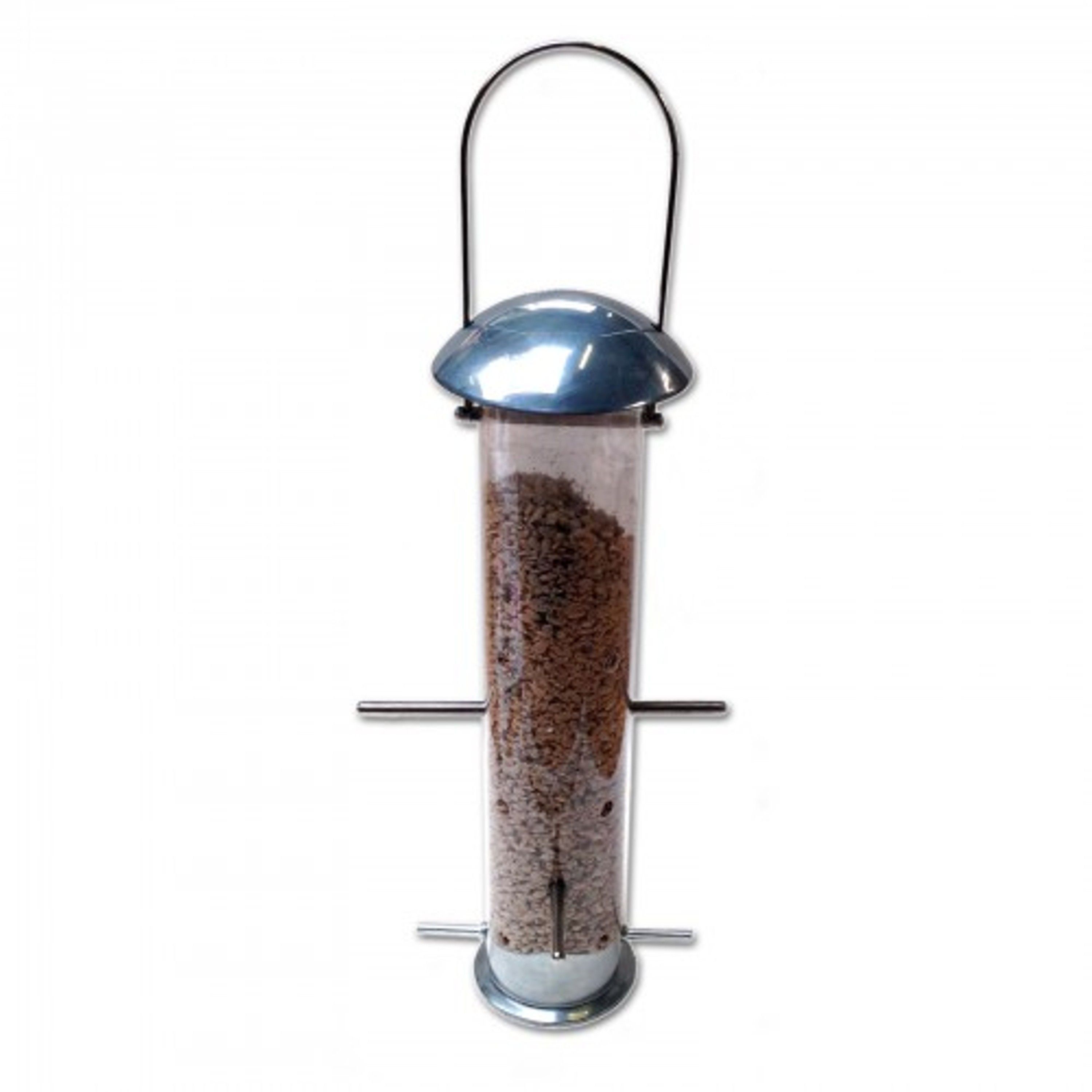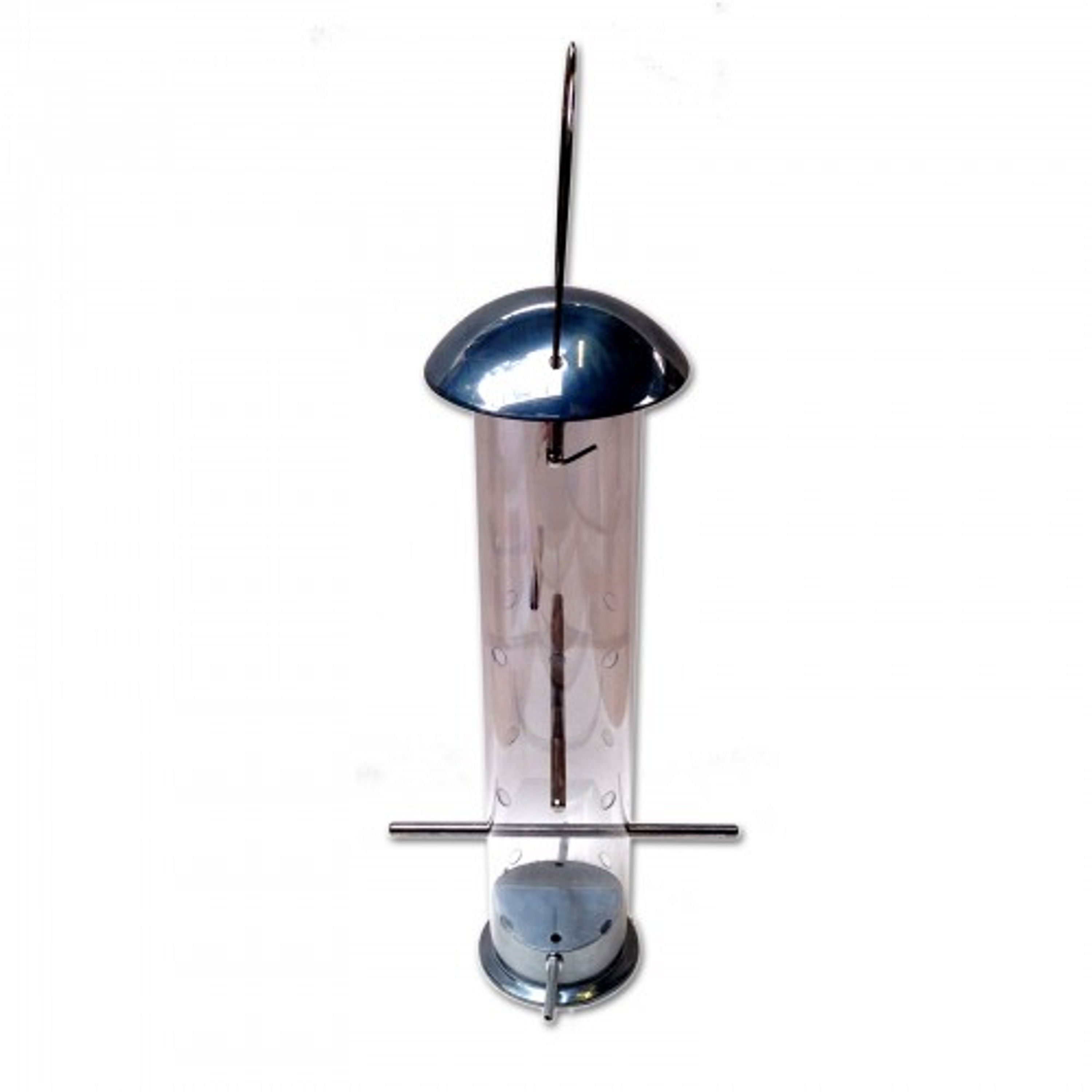 Großer Futterspender für geschälte Sonnenblumenkerne aus poliertem Aluminiumguss