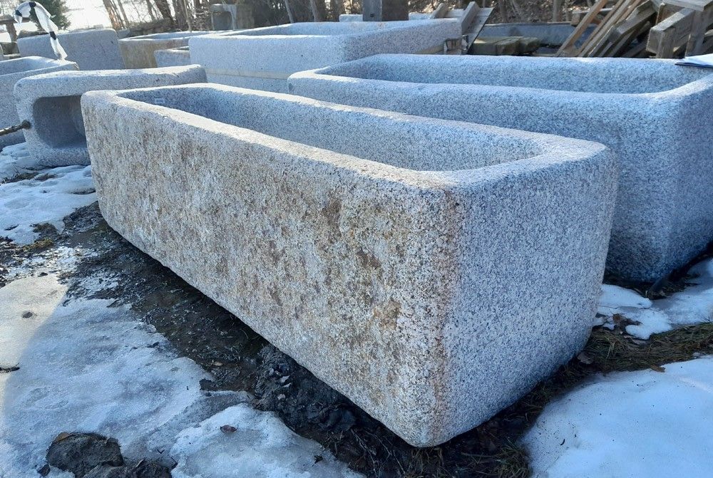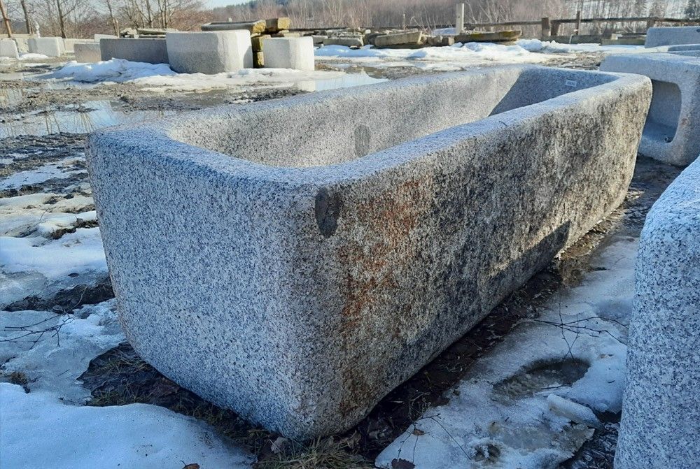 Rechteckiger Granitbrunnen, ideal als Brunnenbecken für Wasser Länge x Breite x Höhe: 245 x 71 x 63 cm Gewicht: 1500 kg Preis: Euro 2226,25 zzgl. MwSt. = Euro 2649,-- Lieferung und kostenlose Selbstabholung möglich Wir haben mehrere solcher Brunnen und Steintröge für Wasser aus Granit und Sandstein ... Mehr