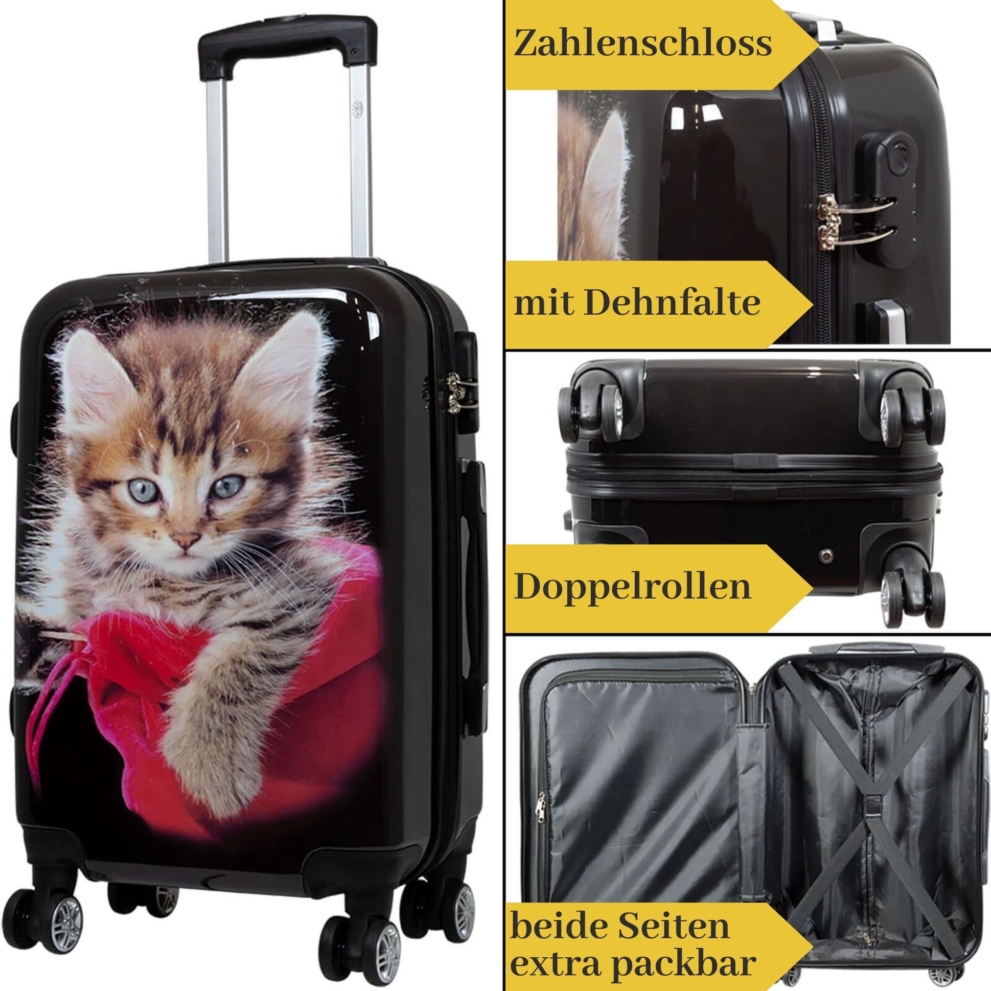 Monopol großer Hartschalentrolley mit Katze schwarz, 94 Liter