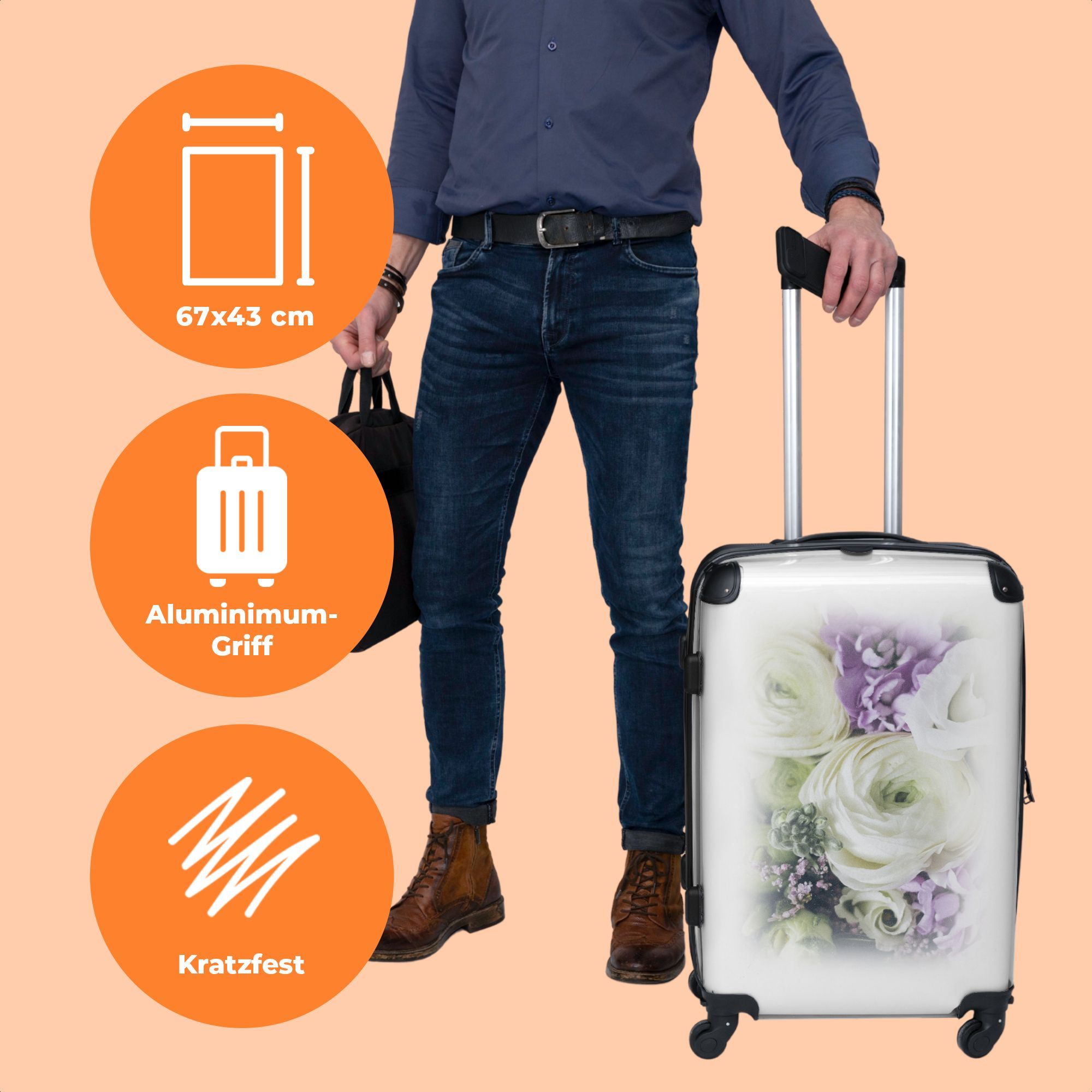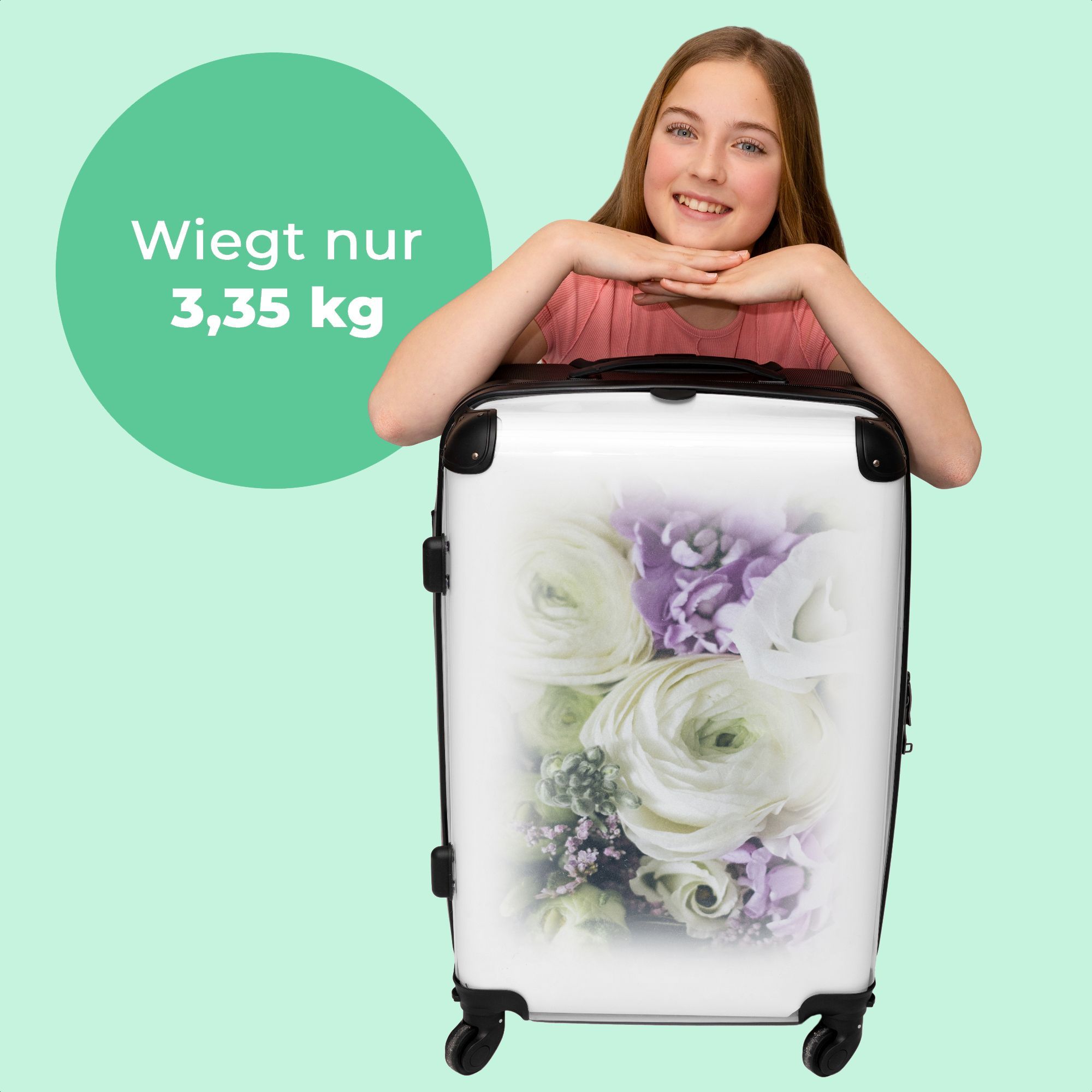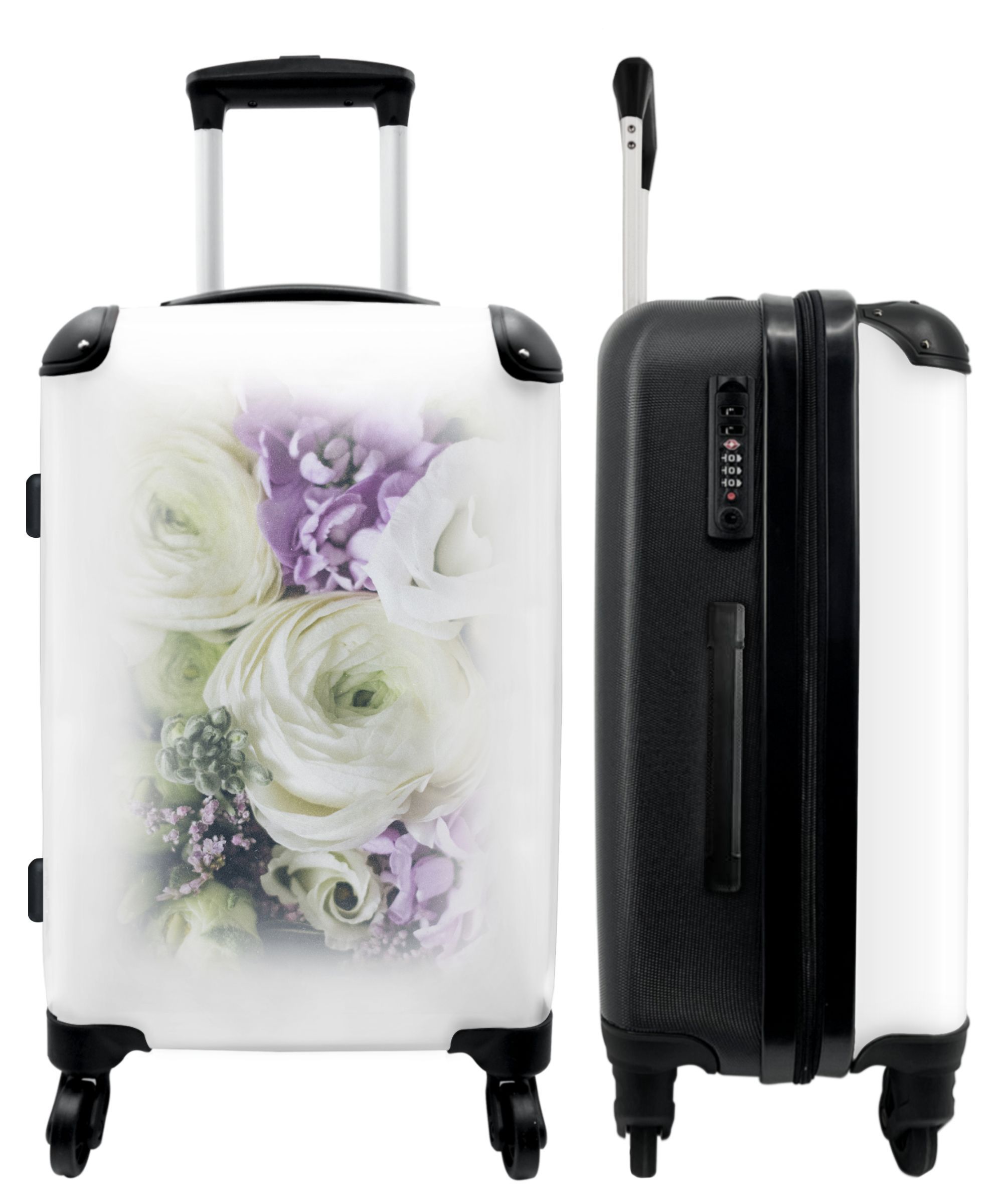 Großer Koffer - 90 Liter - Blumen - Design - Rose - Weiß - Trolley - Reisekoffer