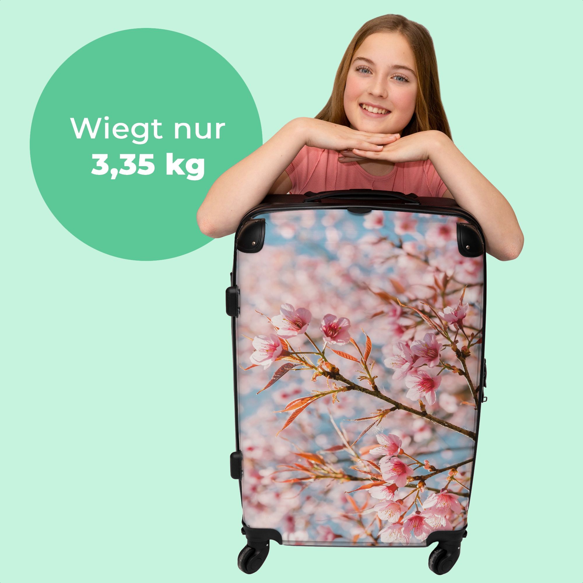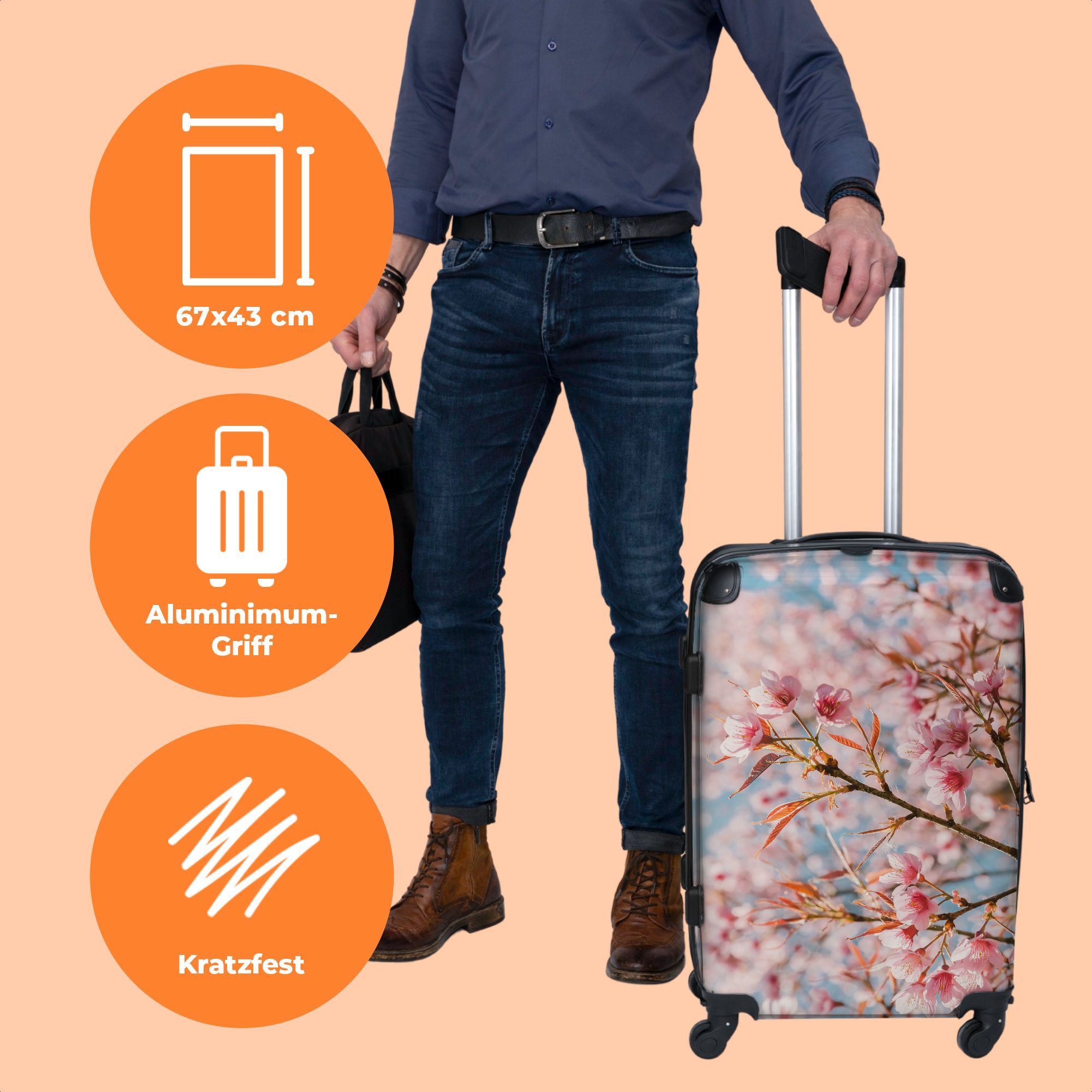 Großer Koffer - 90 Liter - Sakura - Frühling - Blumen - Rosa - Botanisch - Trolley -