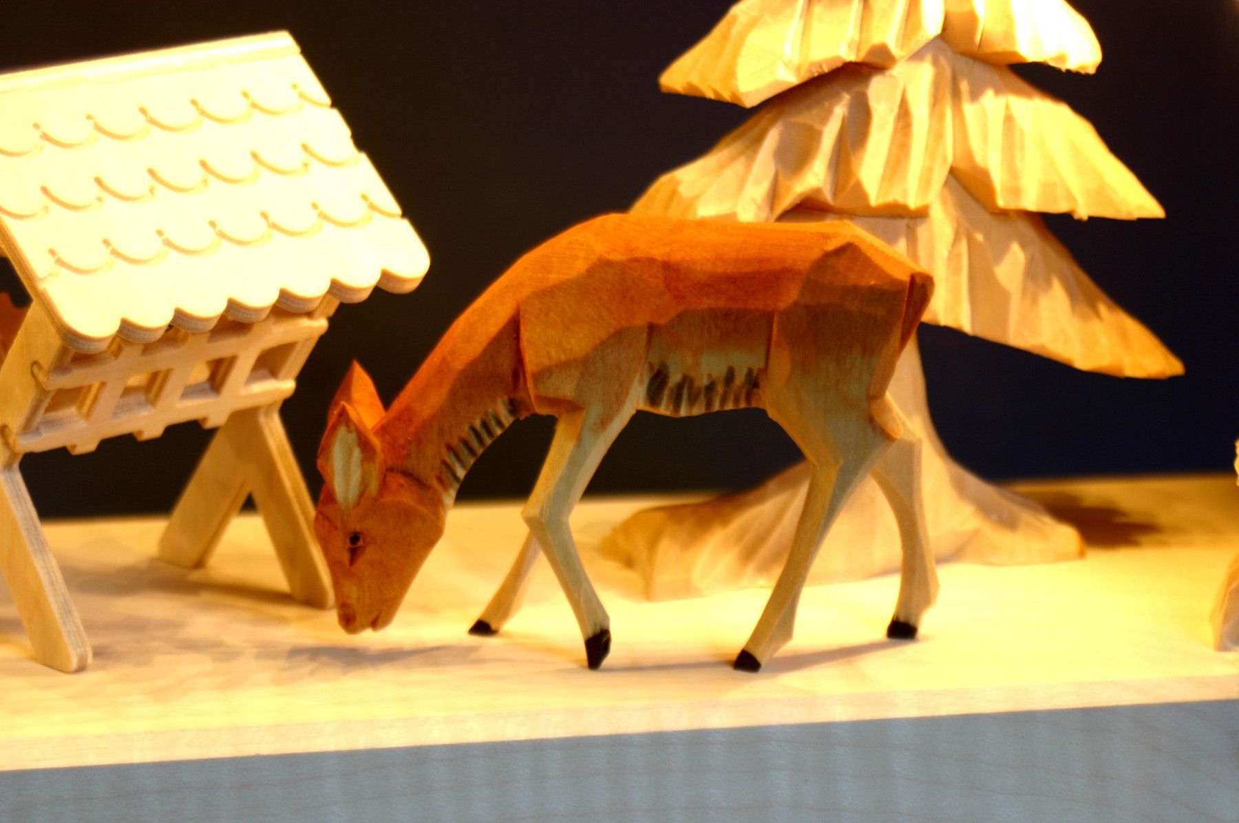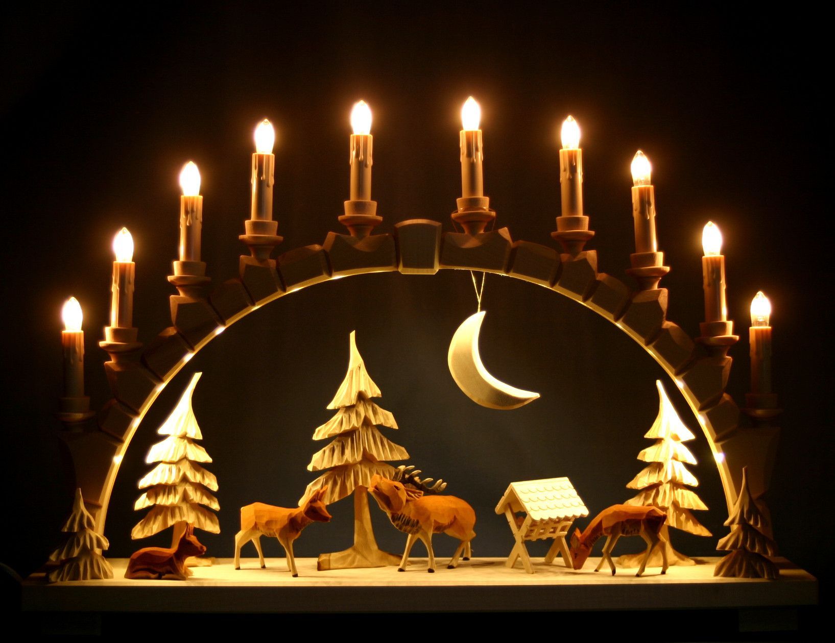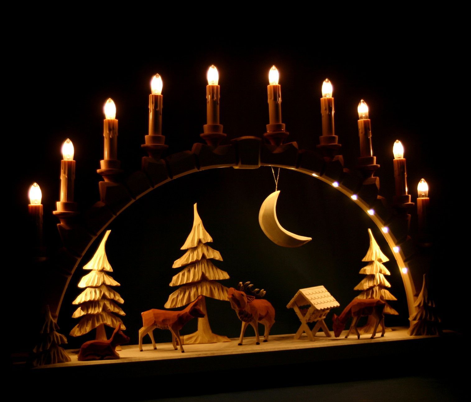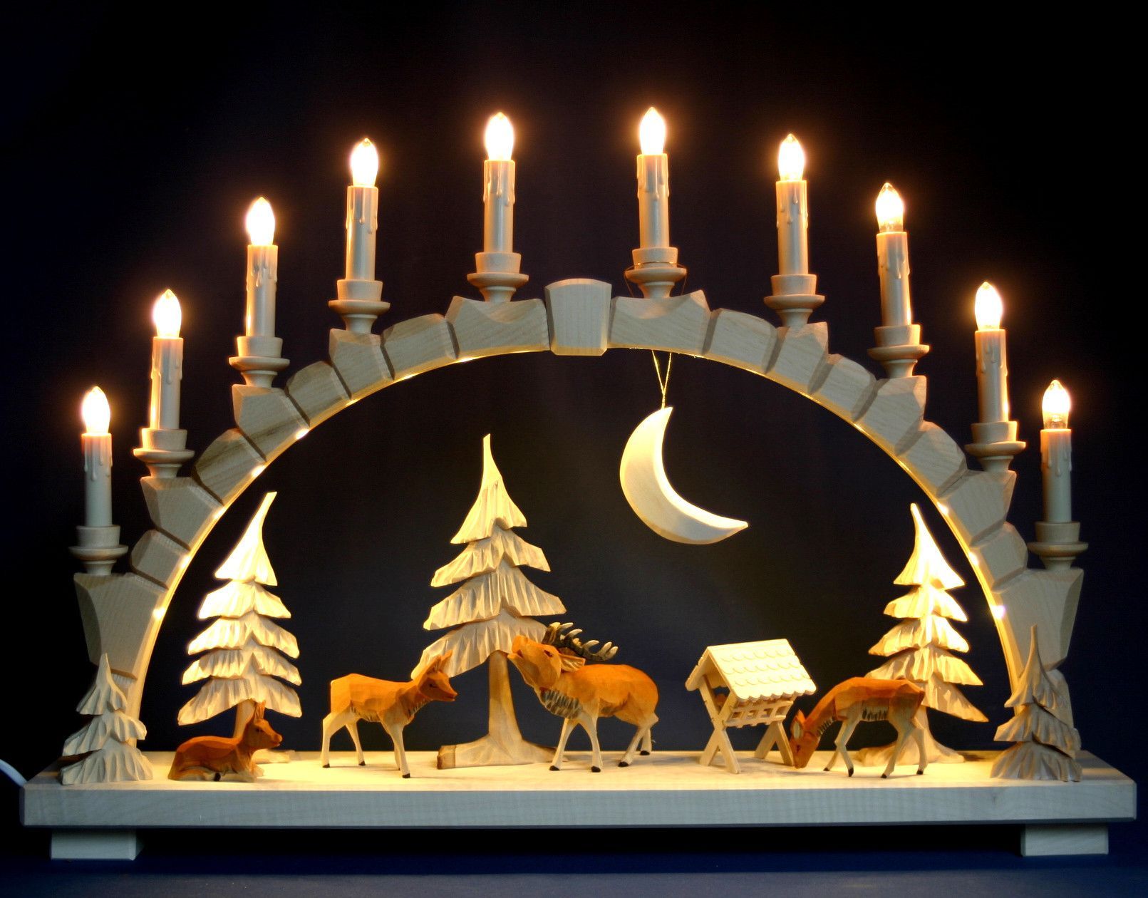 Großer LED Schwibbogen Wildfütterung große Wildtiere Hand- geschnitzt Erzgebirge