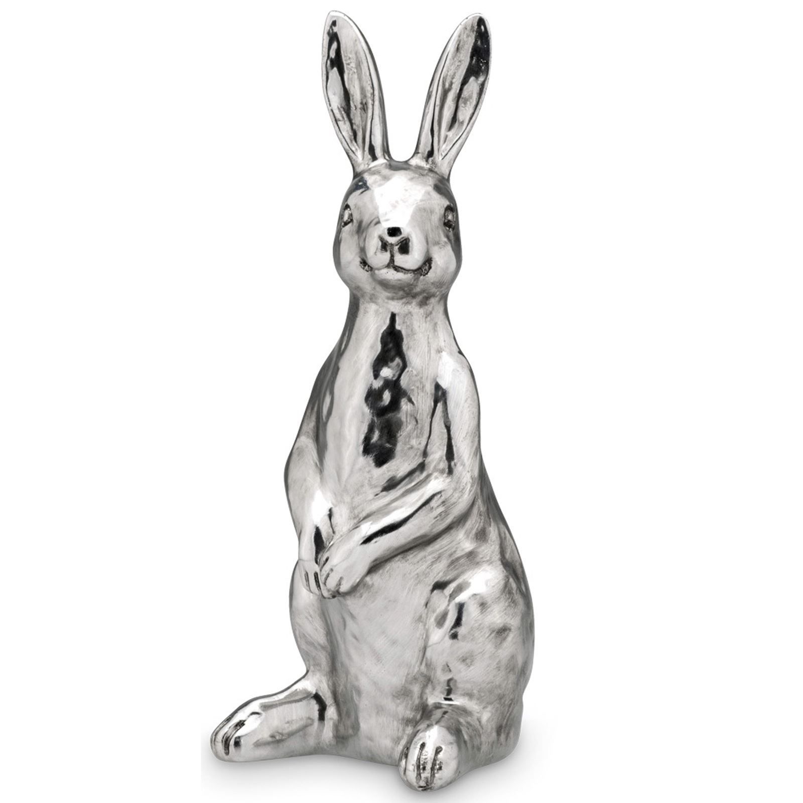 großer silberner stehender Deko Osterhase aus Kunststein 30 cm hoch