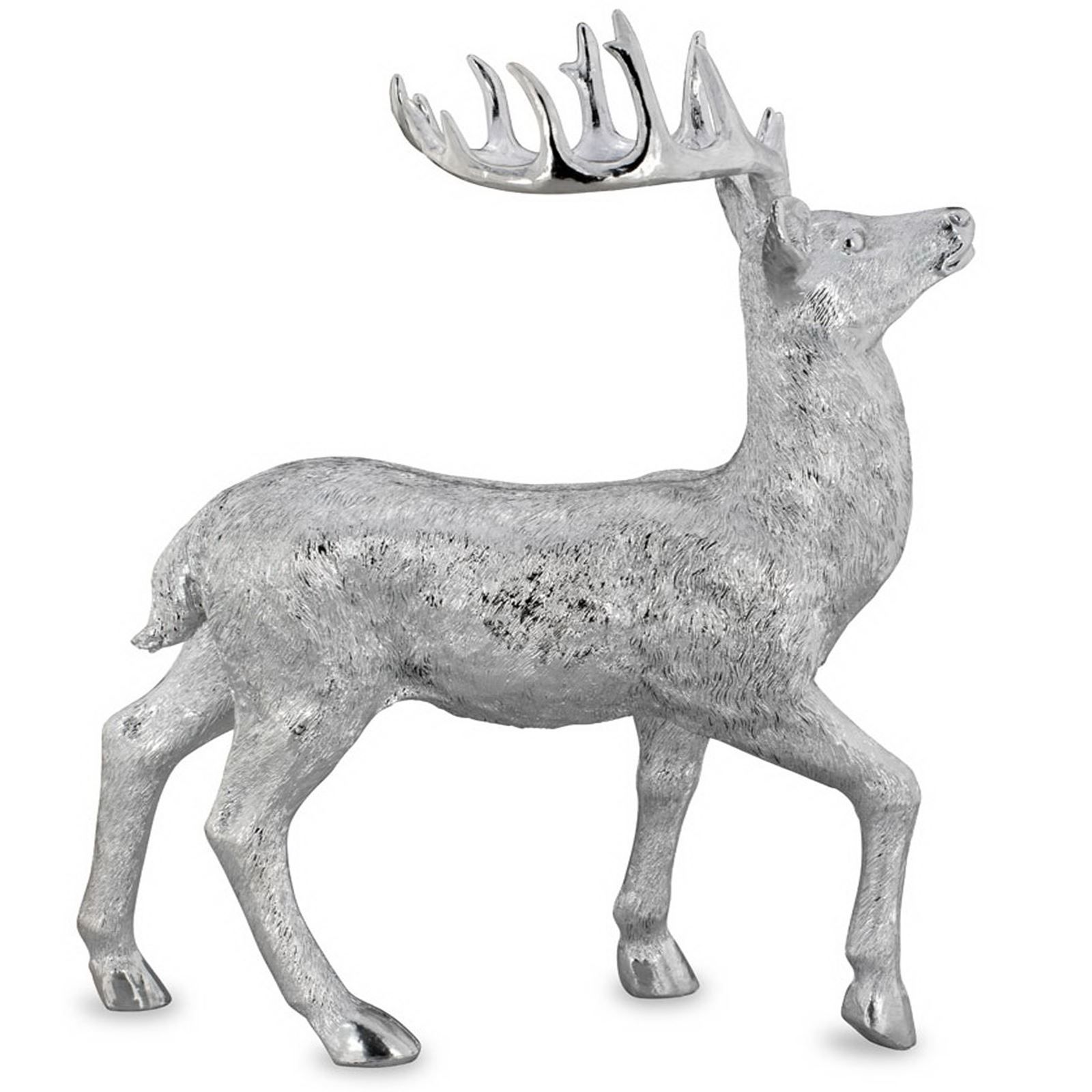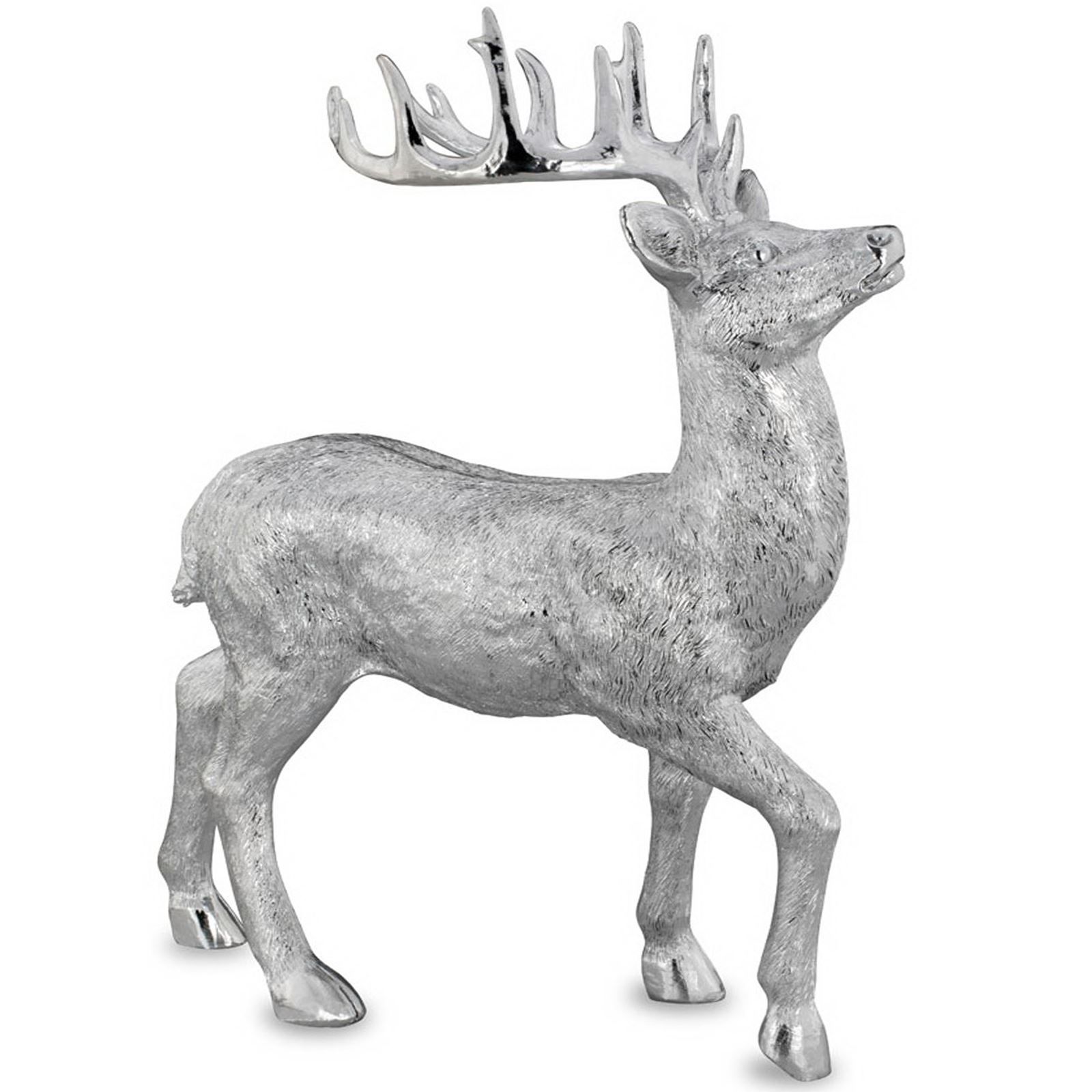großer silberner stehender XL Polyresin Deko Hirsch 50 cm hoch
