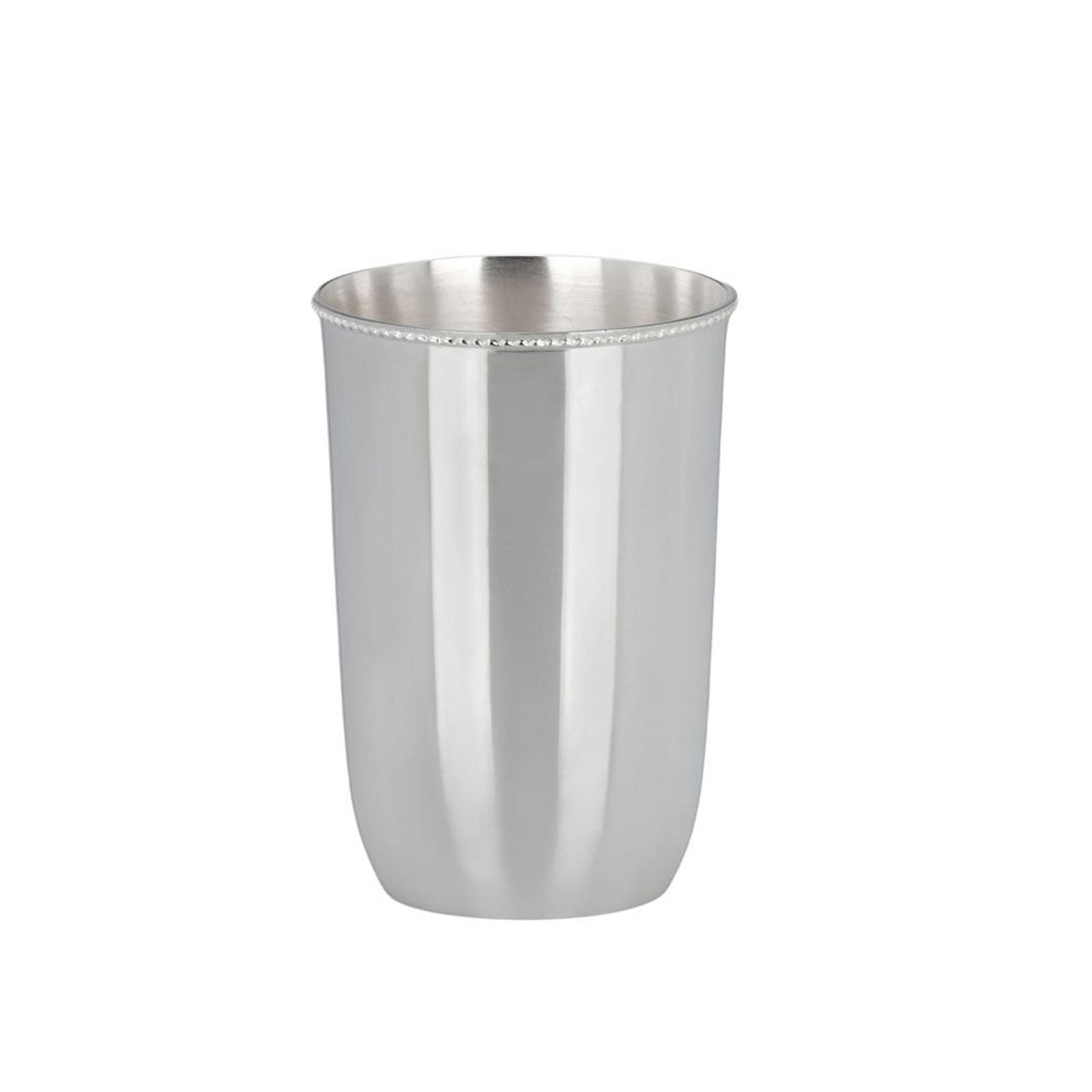 Großer versilberter Becher 12.5 cm silberner Trinkbecher mit Perlrand glatt poliert