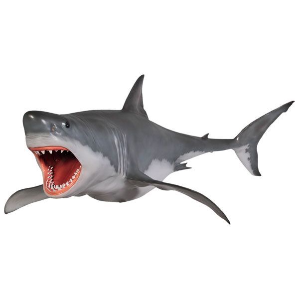 großer weißer Hai auf Metallständer lebensgroß 206cm für draußen aus GFK