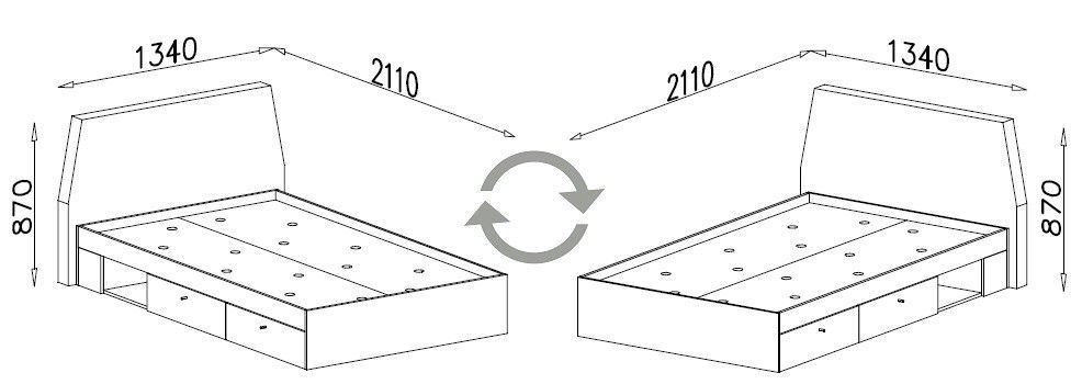 Großes Einzelbett Alessio 13B 120x200cm Bett mit 2 Schubkasten und Fach Modern