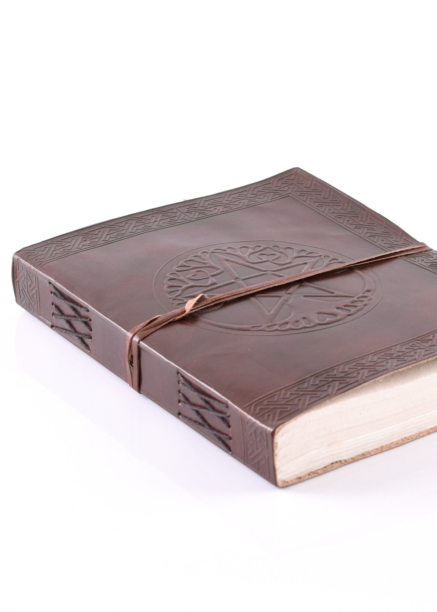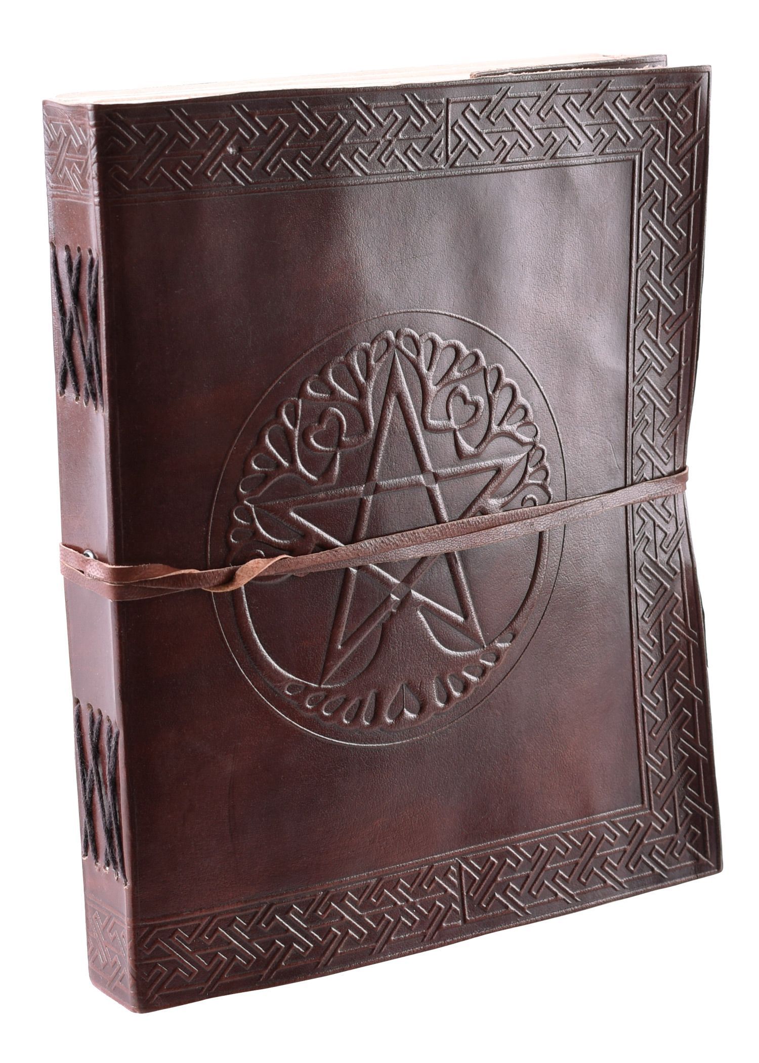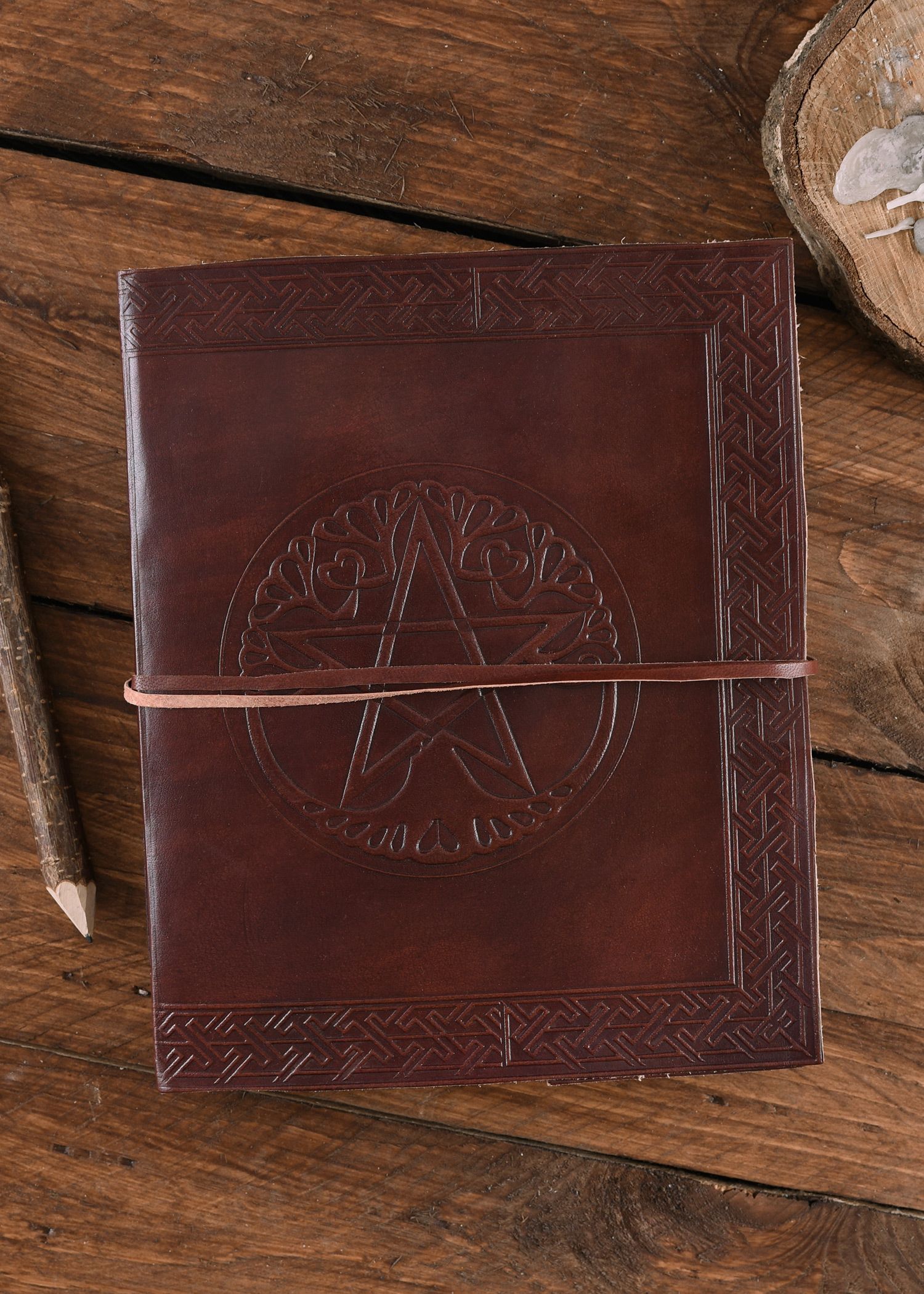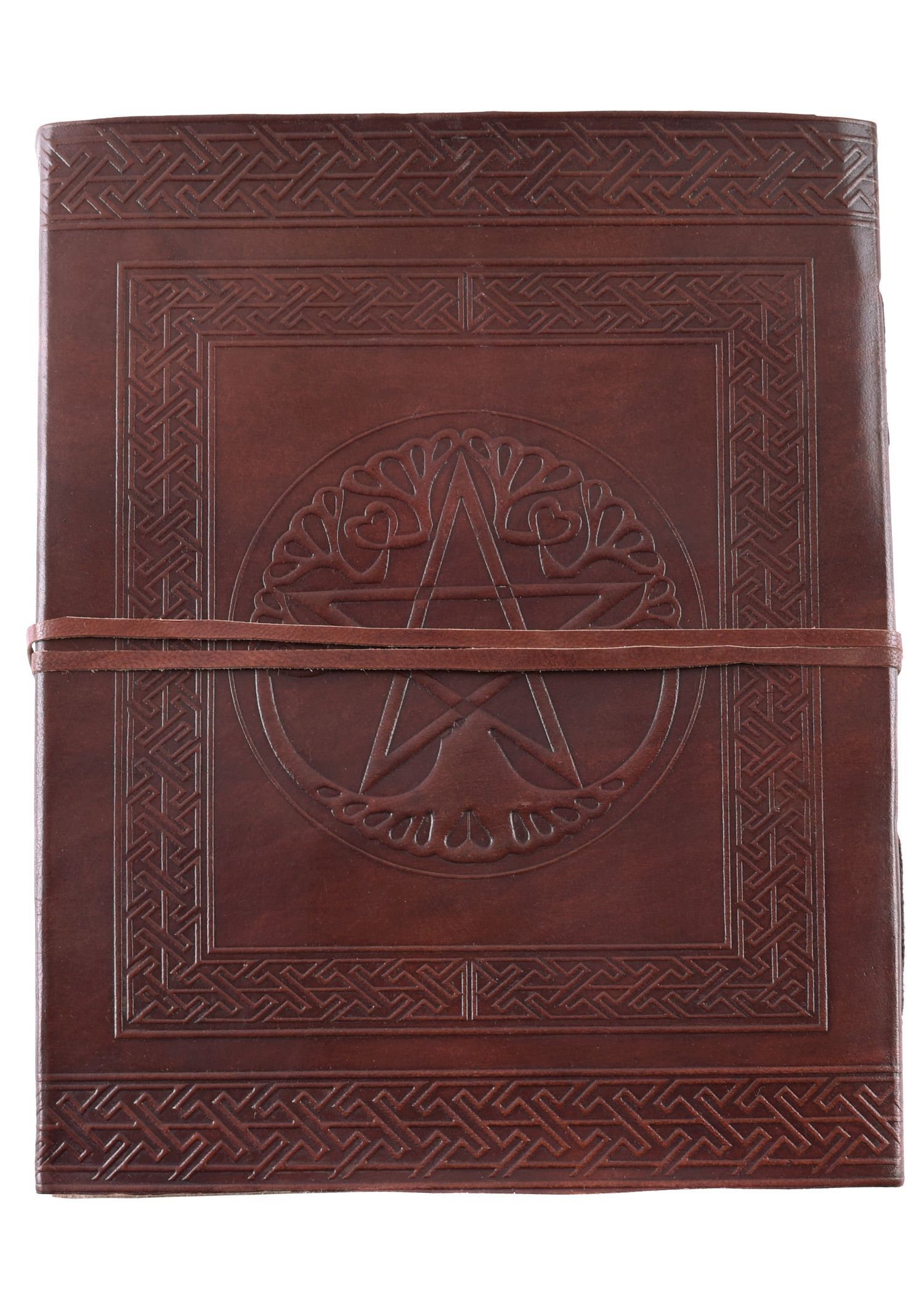 Grosses Lederbuch mit Pentagramm, braun, ca. 20 x 25 cm