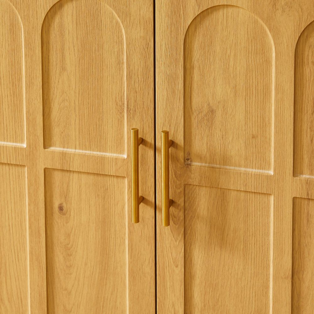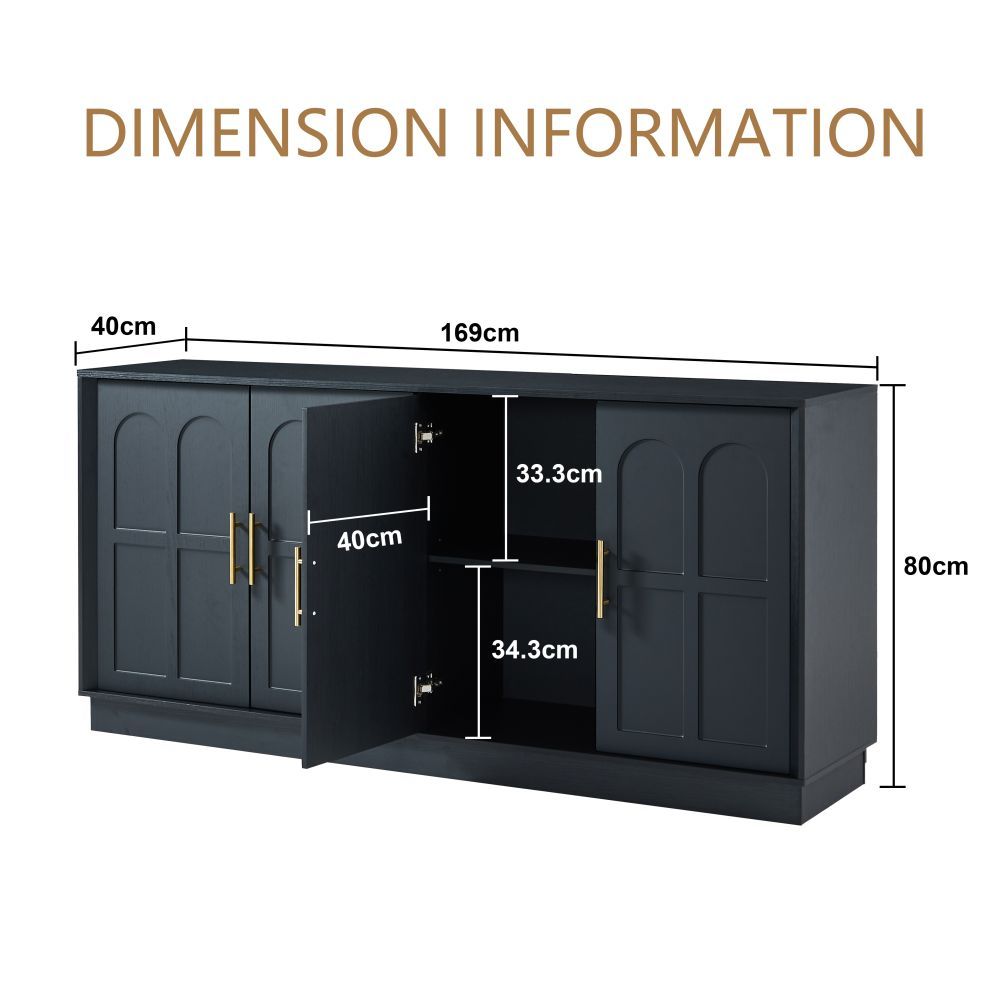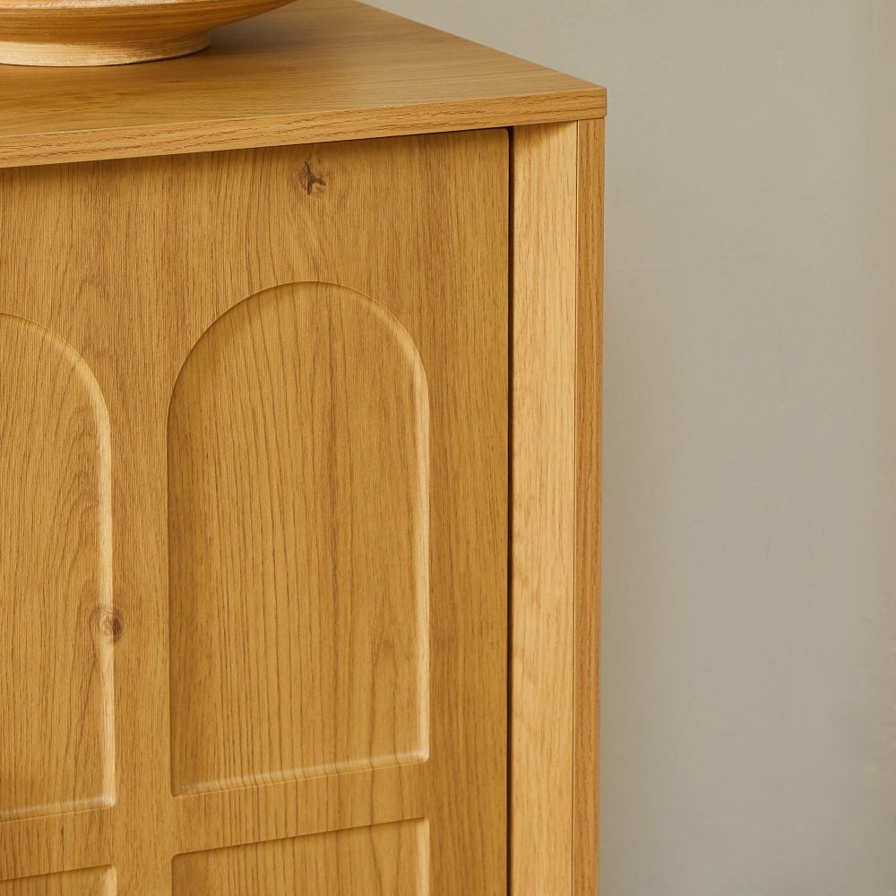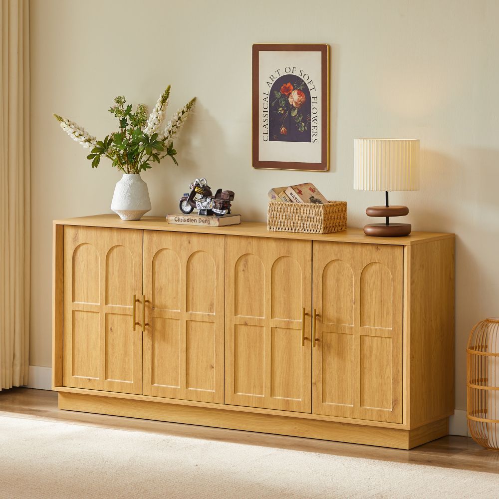 Großes Sideboard mit viel Stauraum und moderner, gewölbter Front. Der 169 cm lange Schrank eignet sich ideal für Wohnzimmer, Küche, Esszimmer oder Flur. Gefertigt aus MDF in natürlicher Optik. Maße: 169 × 40 × 80 cm, Gewicht: 41,9 kg. Funktional, stilvoll und vielseitig einsetzbar.