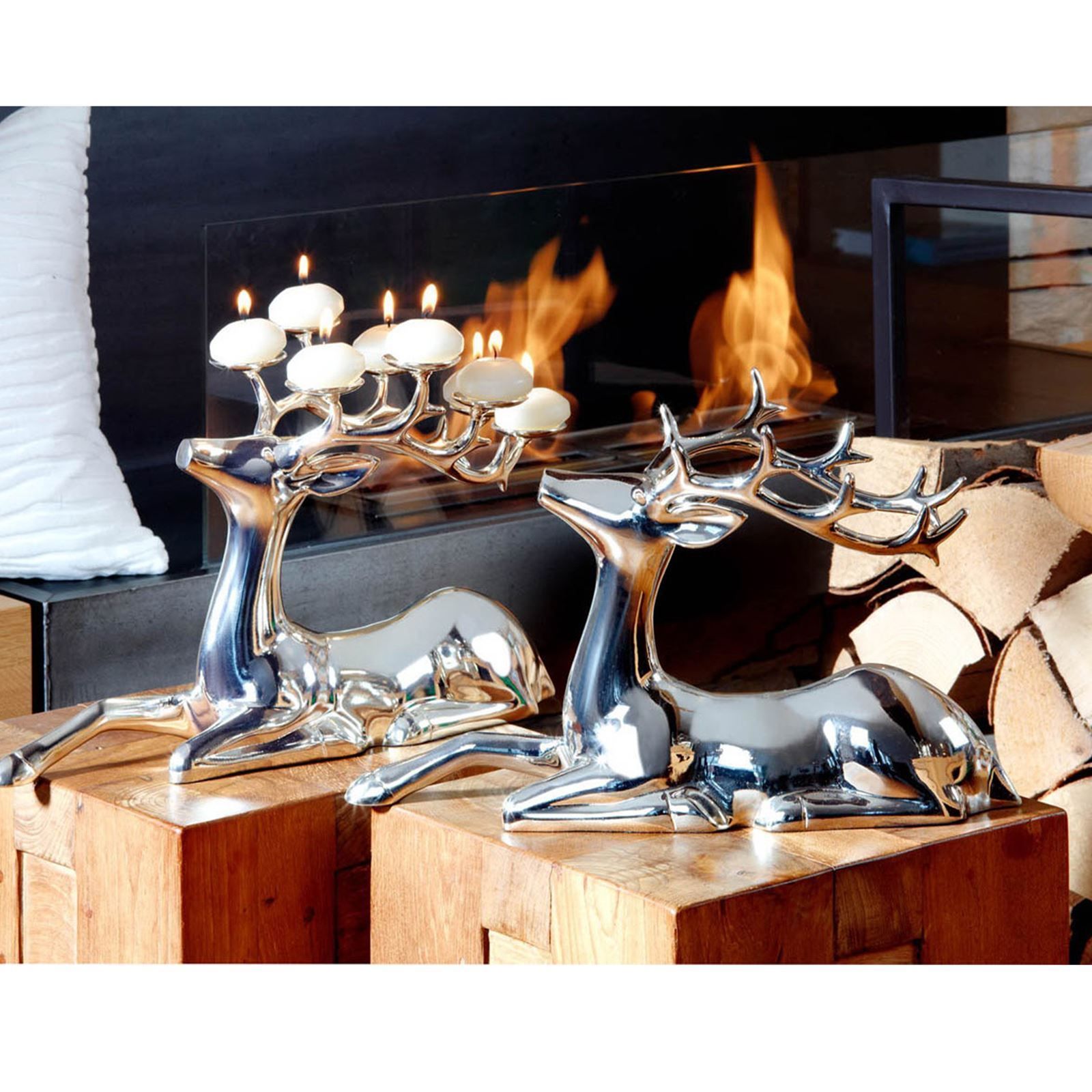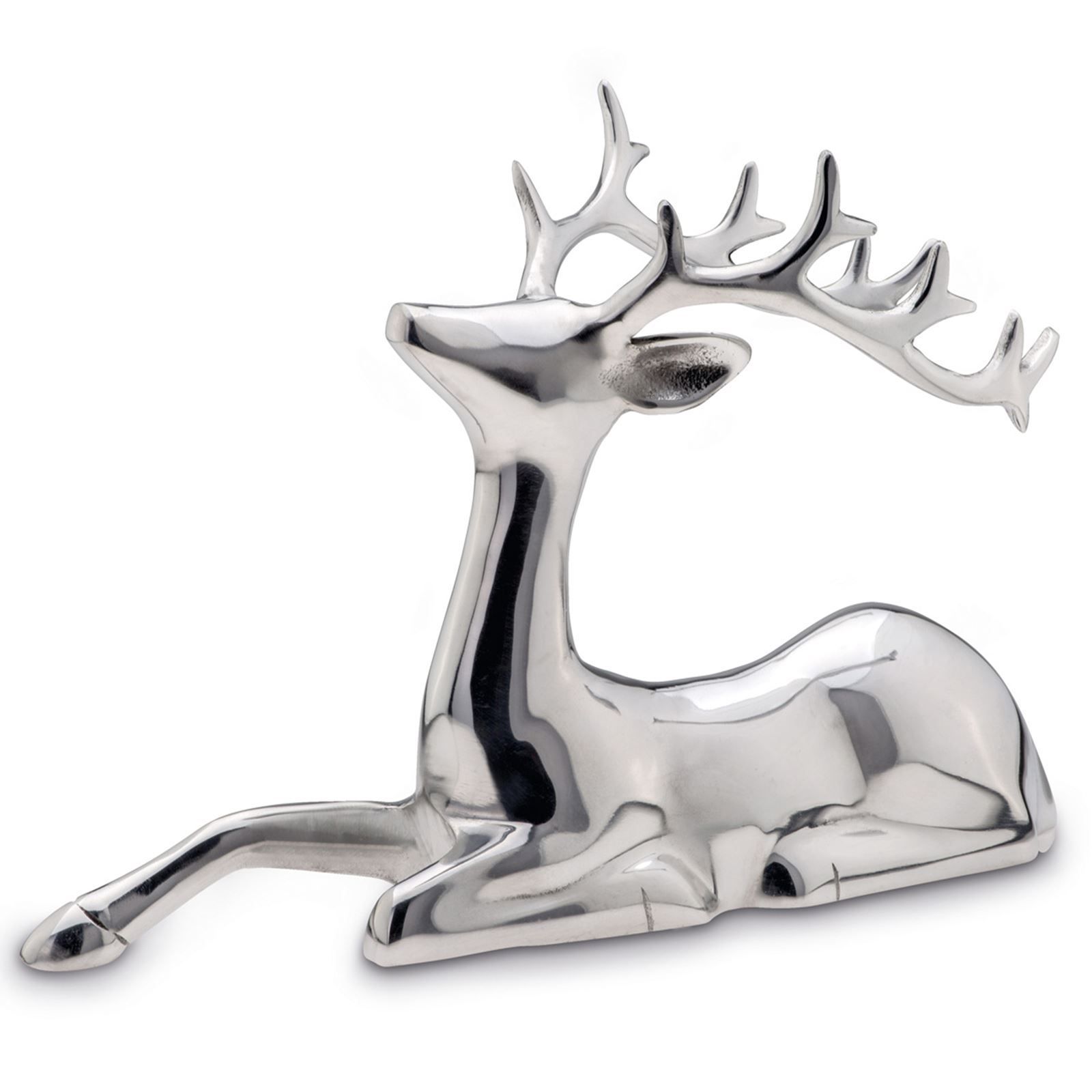 großes silbernes liegendes XL Alu Deko Rentier 38 cm lang