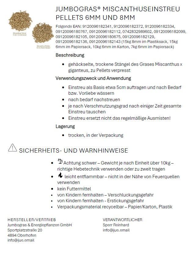 Großtier-Einstreu-Pellets 8mm aus Miscanthus 2 x 15kg Sack