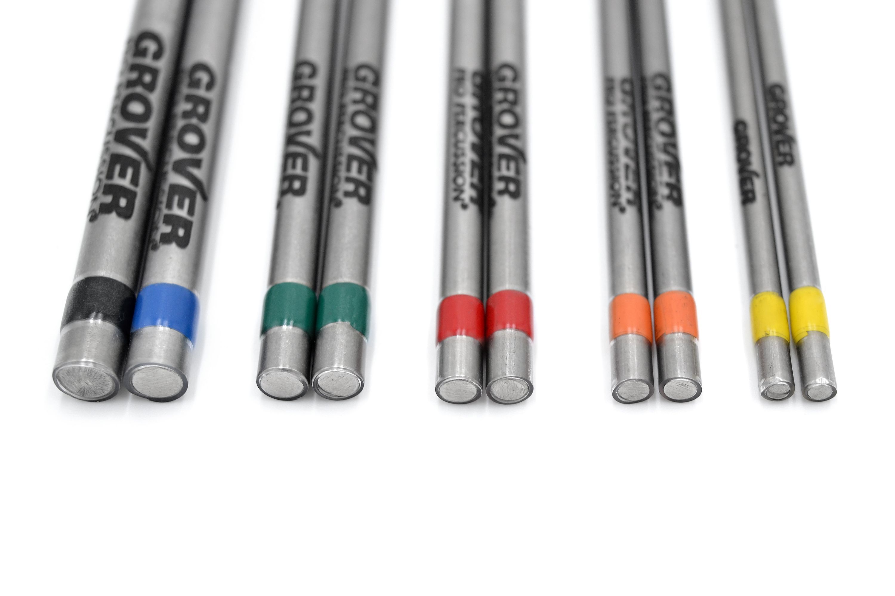 Grover Pro Percussion Triangelschlägel Set TB-D Grover Pro Percussion hat nach jahrelanger Forschung einen traditionellen Triangel-Schlägel entwickelt, der einen vollen, reichen Klang bei minimalem Kontaktgeräusch bietet. Die Grover Pro Percussion Triangelschlägel sind extra lang (8,9') und in sechs