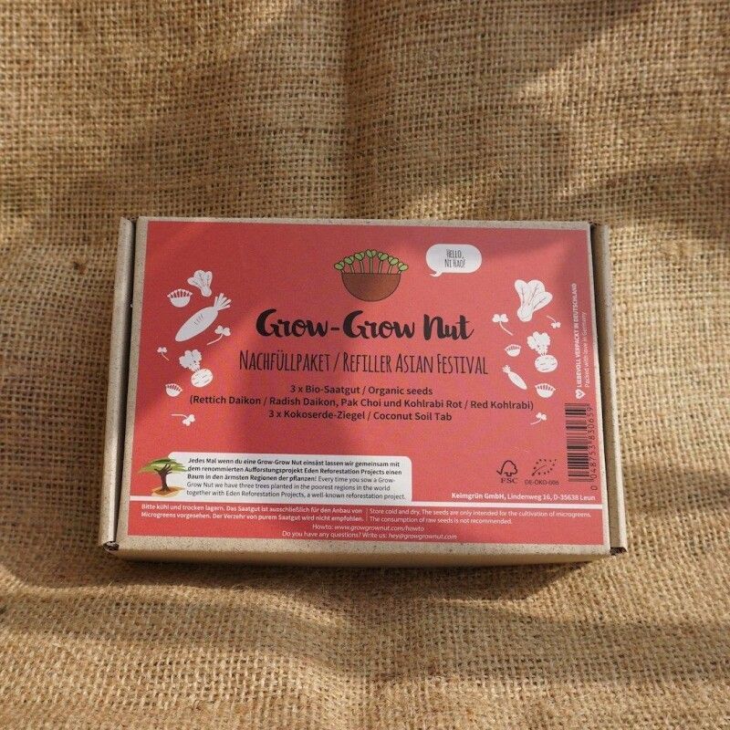 Grow-Grow Nut, Nachfüllpaket "Asian Festival", 3x Bio-Saatgut (Rettich, Pak