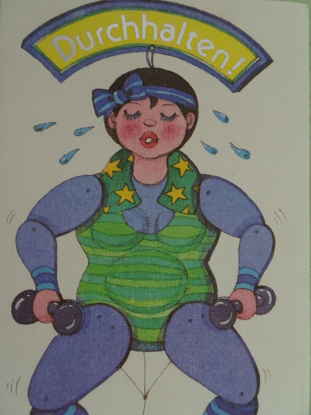 Grußkarte Planet Verlag Berlin Storch Durchhalten "im Leben" Sport Humor RAR
