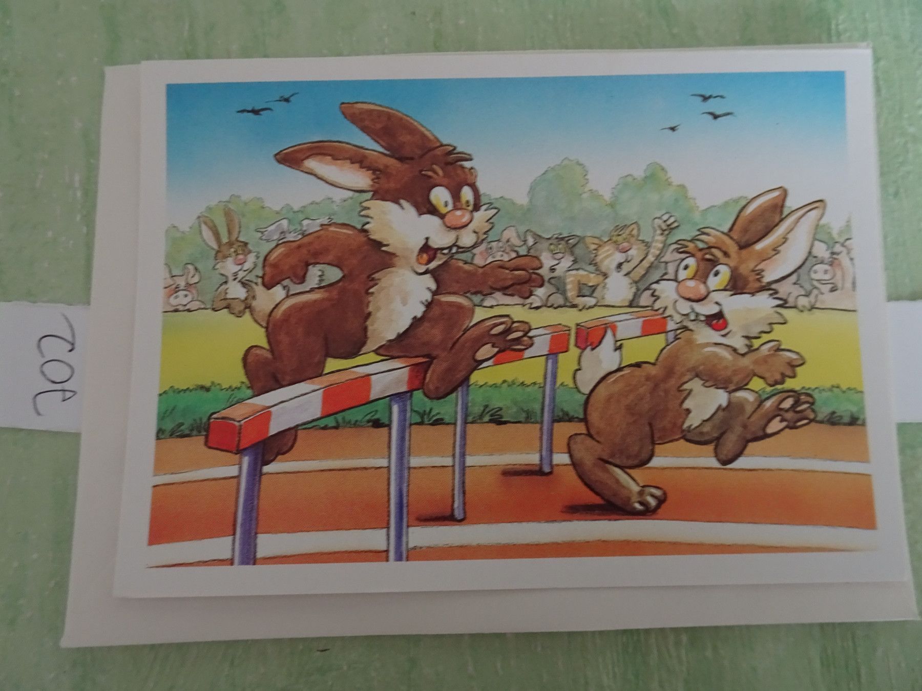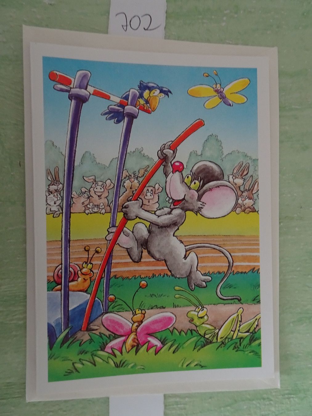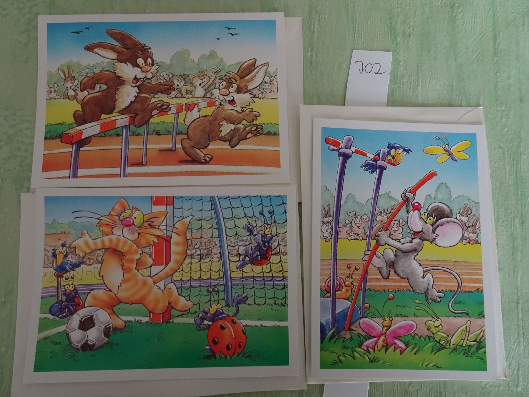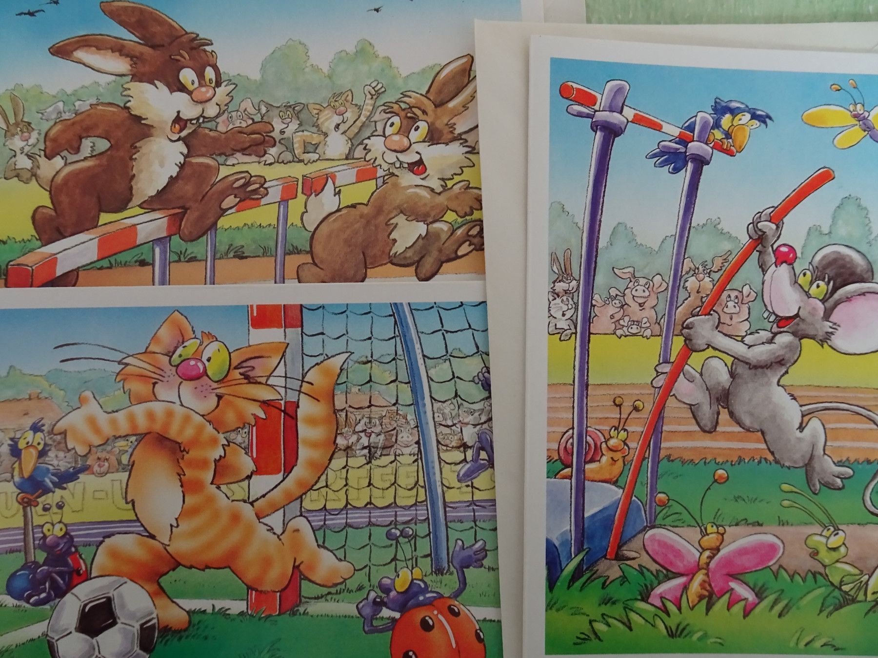 Grußkarten Planet Verlag Berlin Sport Hase Hürdenlauf Katze Fußball Maus Hochsprung
