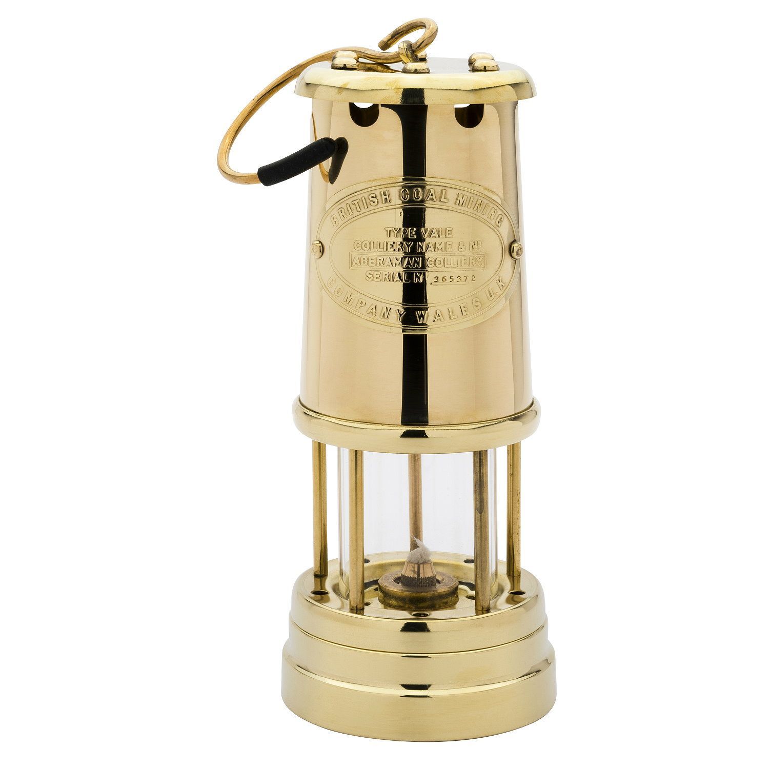 Grubenlampe aus Wales, Messing poliert, Höhe 22 cm, Runddocht, Leuchtdauer ca. 10 Std