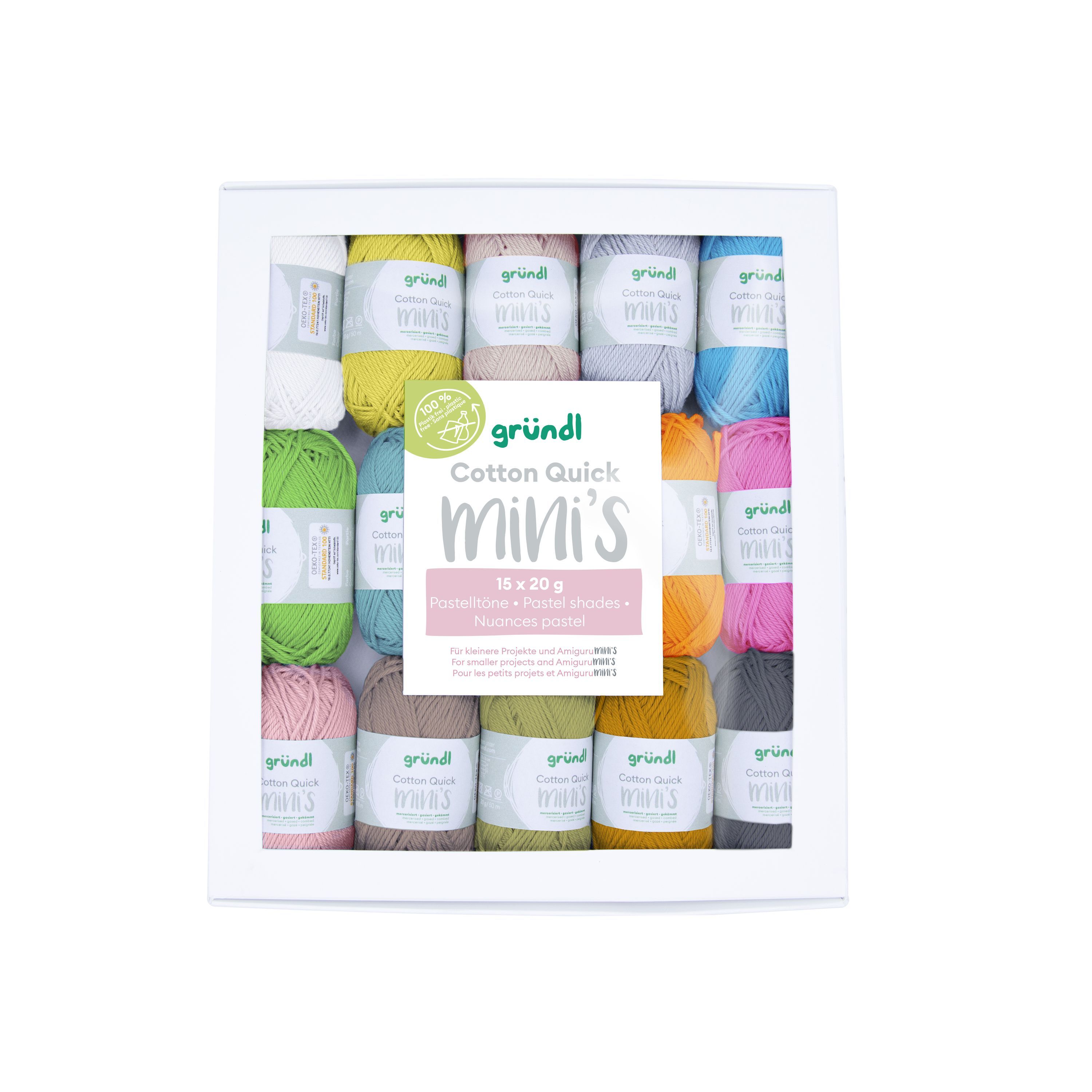 Gründl Cotton Quick Minis Box 15 x 20g Pastelltöne oder 15 x 20g Buntstifttöne