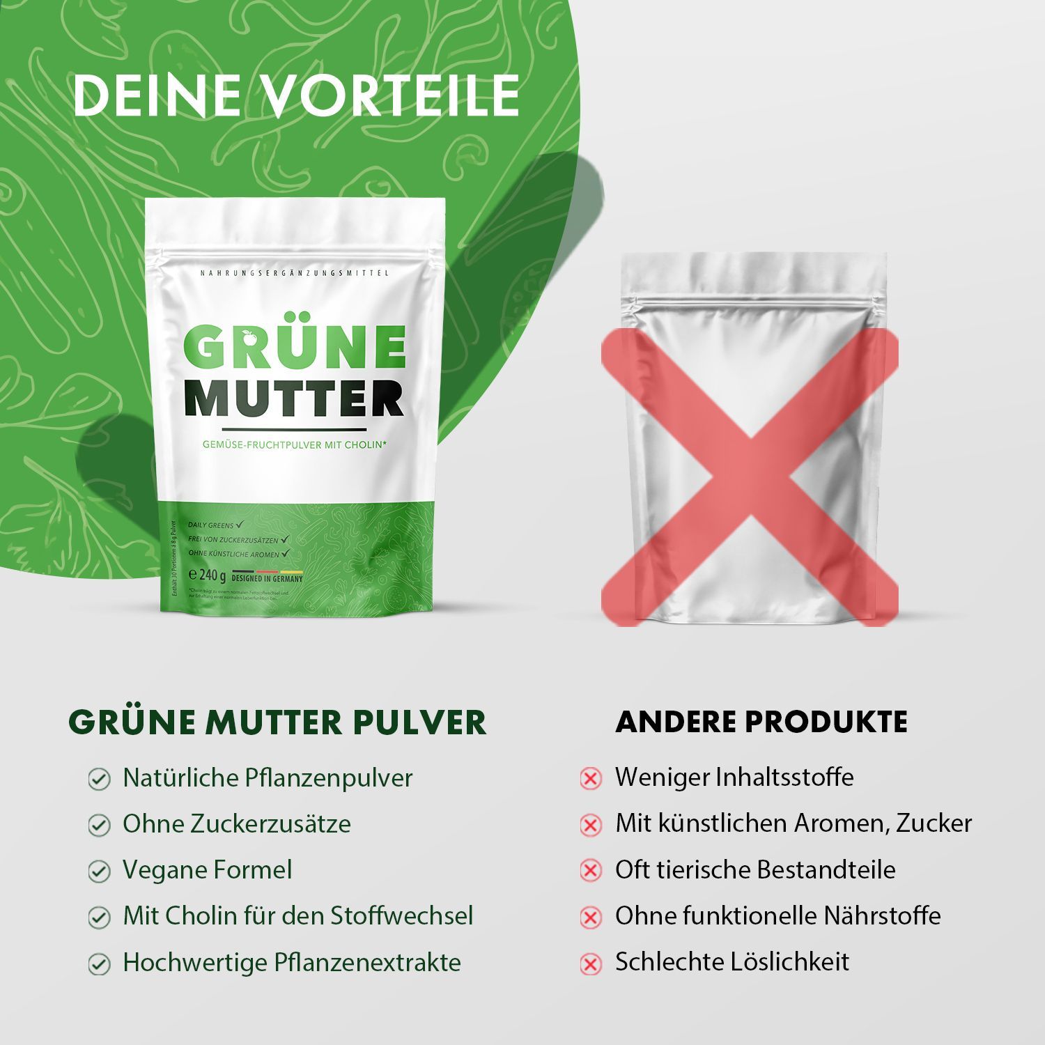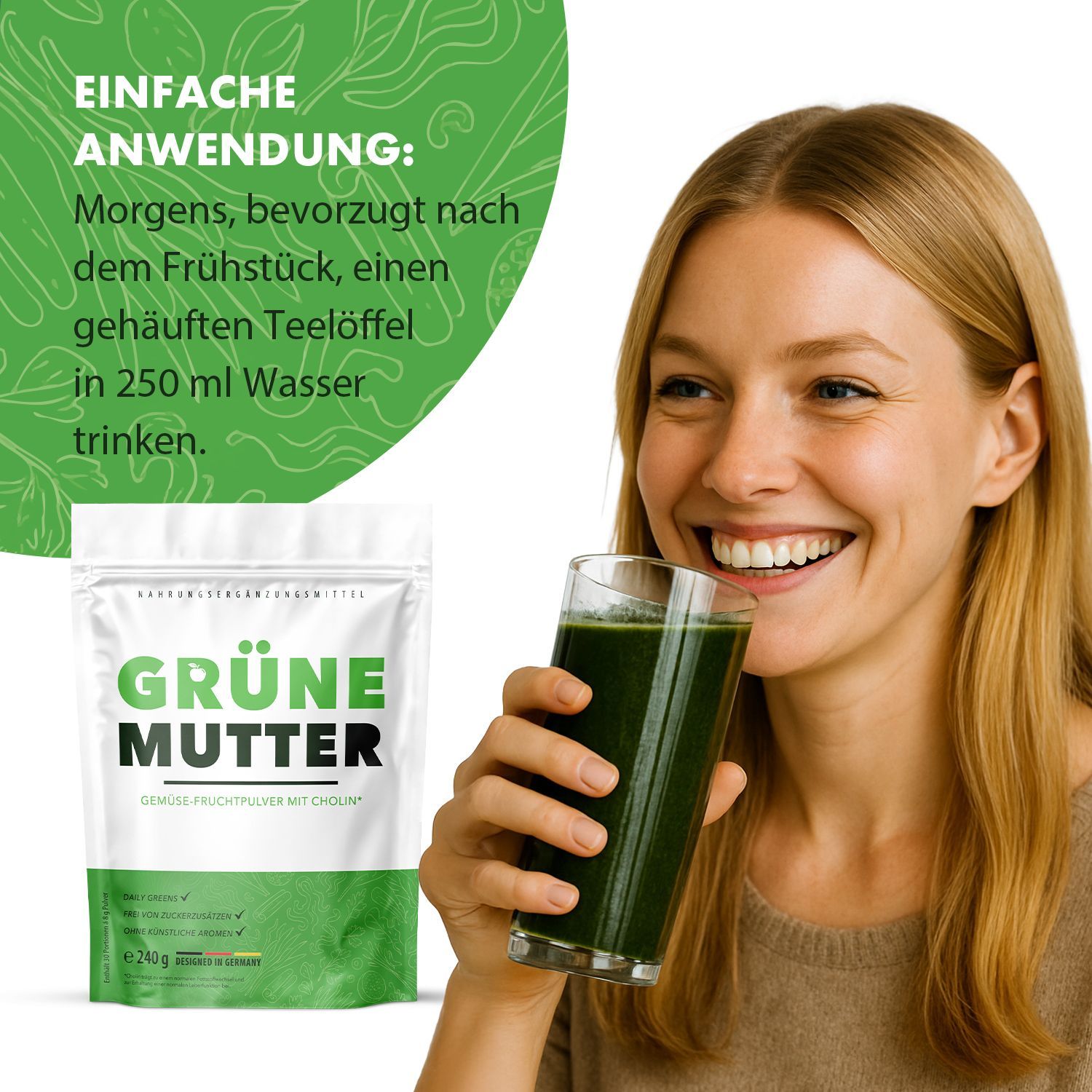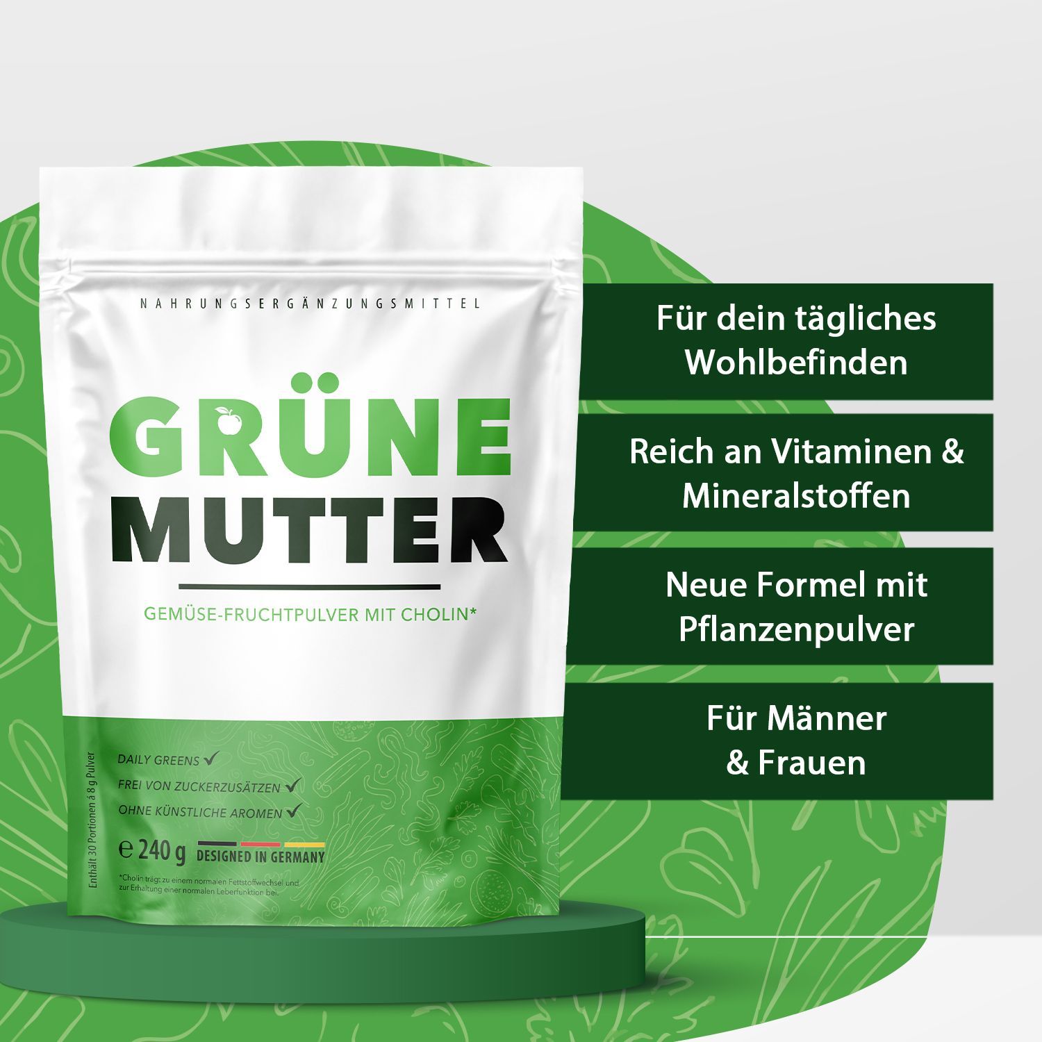 Grüne Mutter Pulver | Reich an Vitaminen | Einfache Anwendung | Inhalt 240g