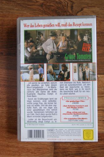 Grüne Tomaten - eine gebrauchte VHS-Kassette in der herstellermäßigen Aufbewahrungshülle. FSK = 6 Spielzeit: ca. 124 Minuten Herausgeber: UFA Universum Film München Erscheinungsjahr: 1991 Weiteres siehe Bilder Versandoptimierungen für den Kauf mehrerer Artikel sind durchaus möglich, was sich insbeso