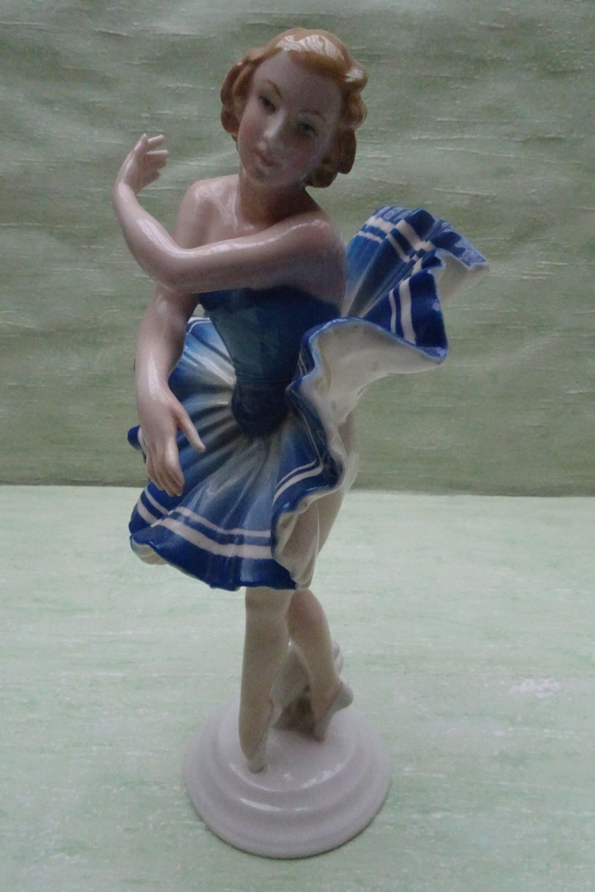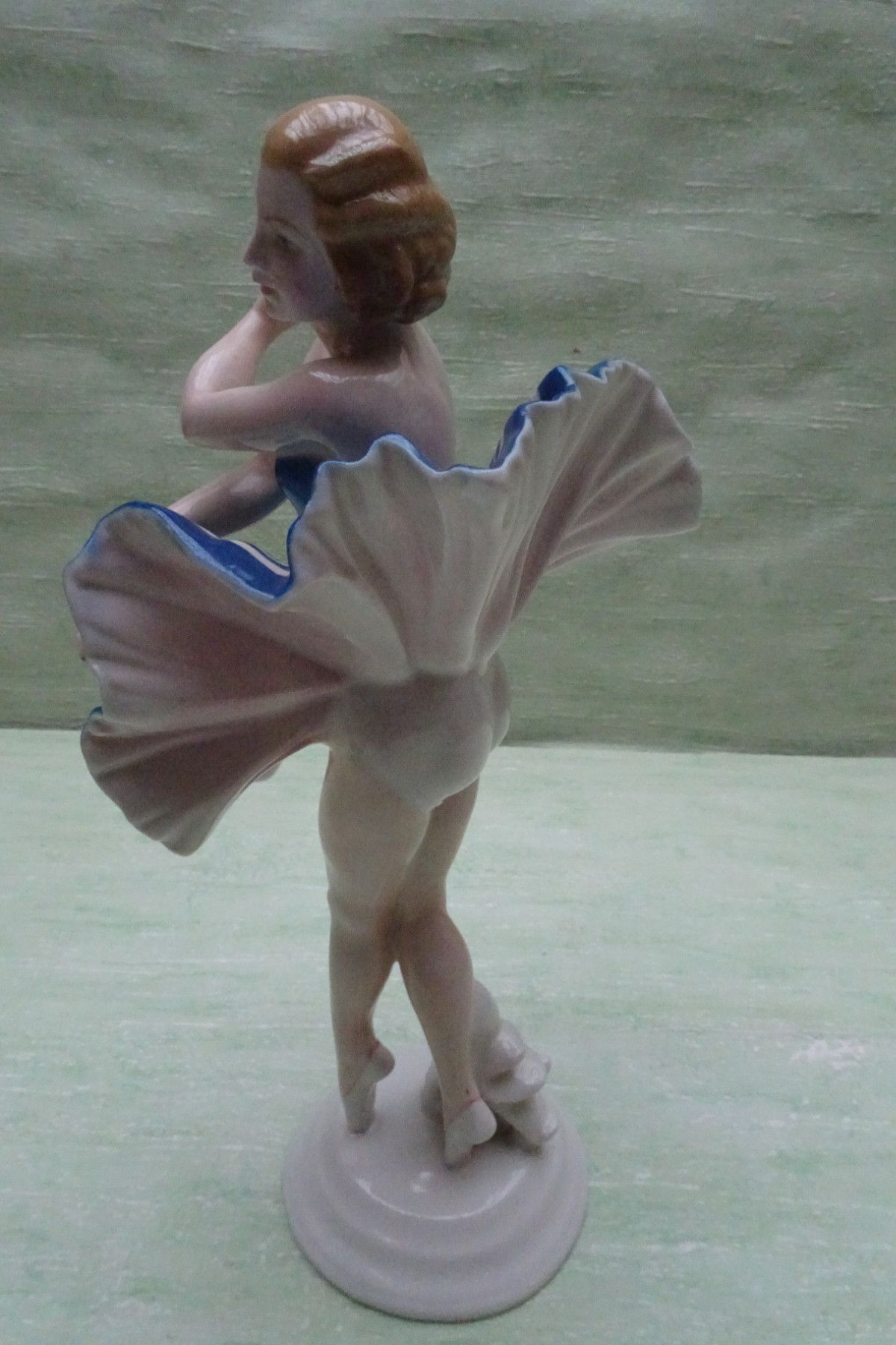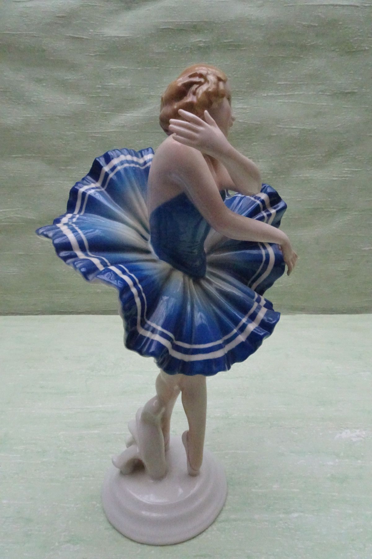 grünes Karl ENS Volkstedt Thüringen Ballerina blaues Kleid 20er Jahre ca 27 cm