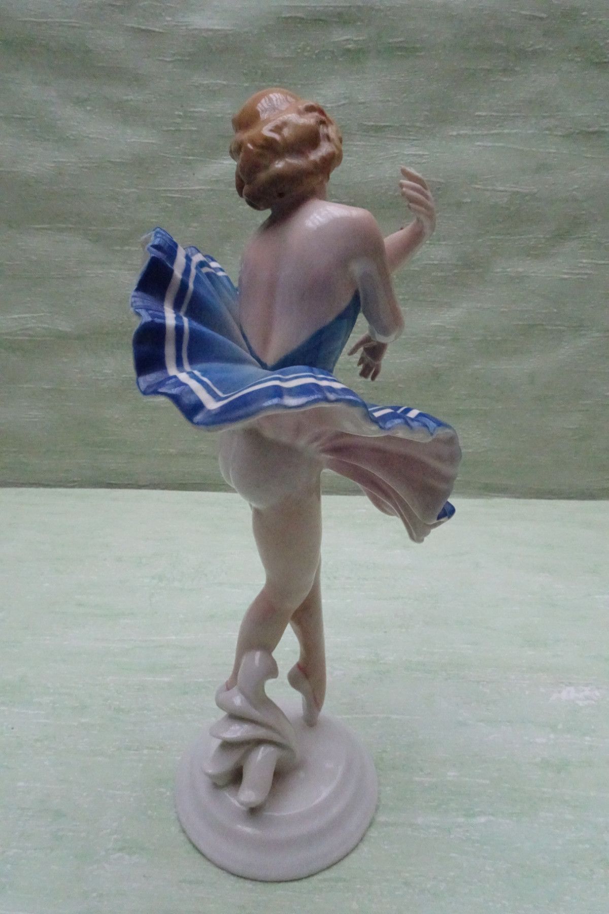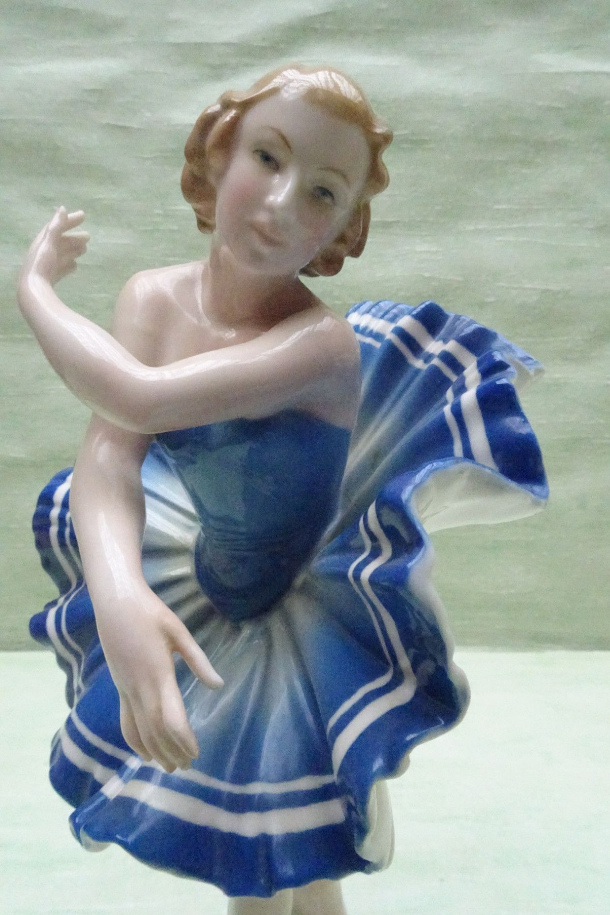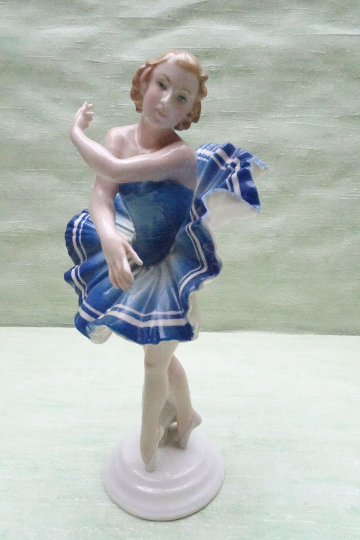 grünes Karl ENS Volkstedt Thüringen Ballerina blaues Kleid 20er Jahre ca 27 cm