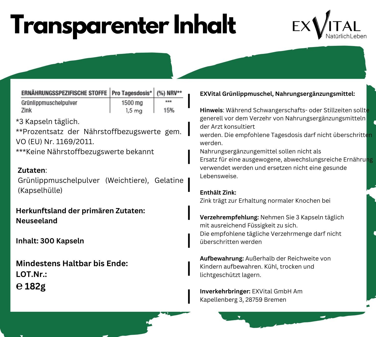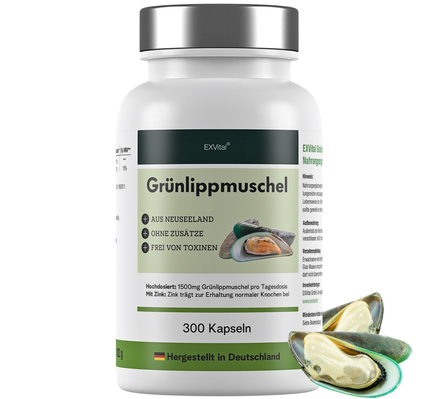 Grünlippmuschel Kapseln 300 Stück - hoch konzentriert, EXVital