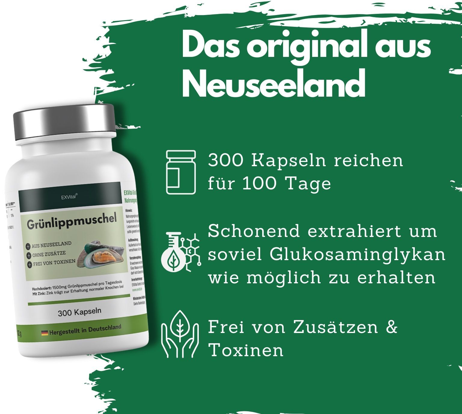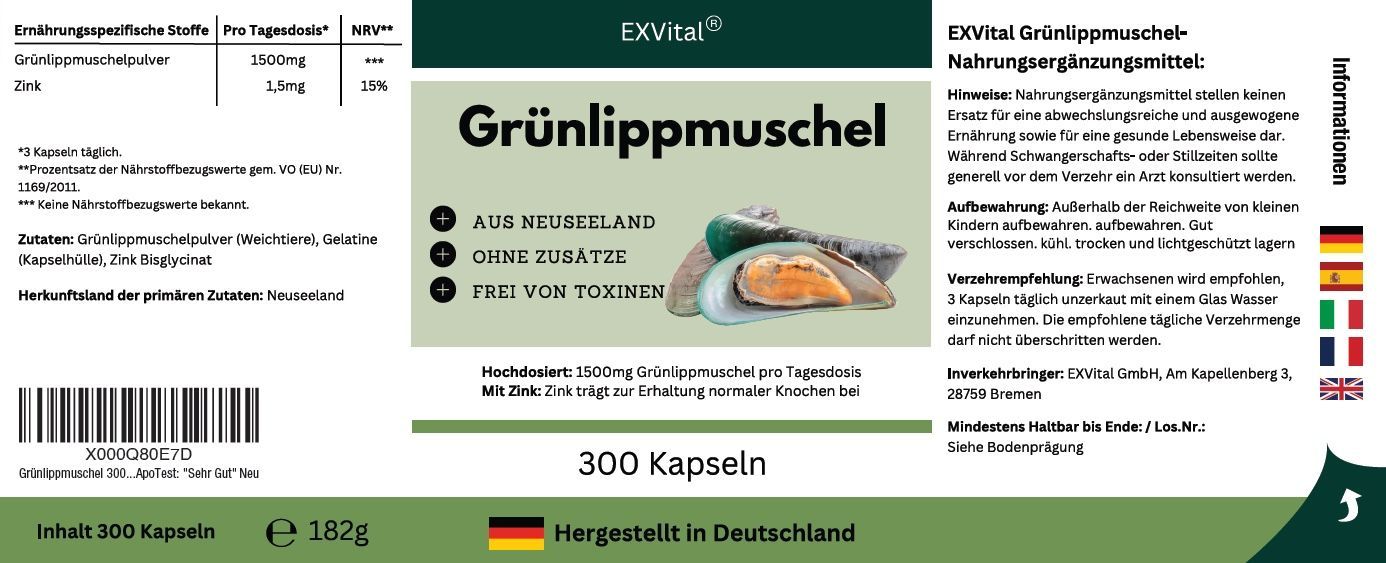 500 mg Grünlippmuschel pro Kapsel. Hergestellt in Deutschland!