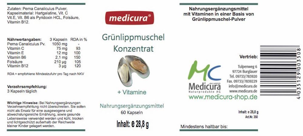 Medicura Grünlippmuschel + Vitamine - 60 Kapseln