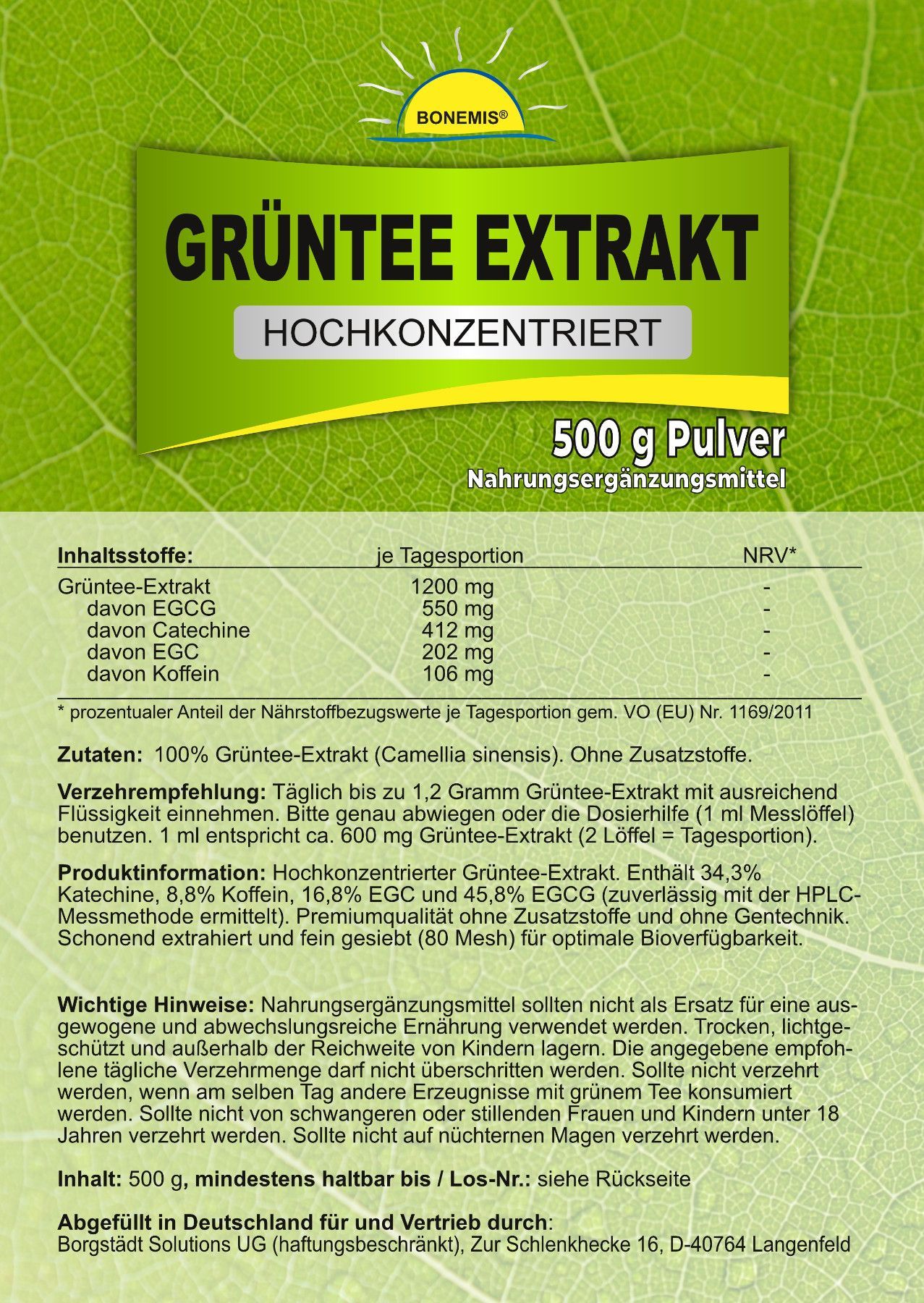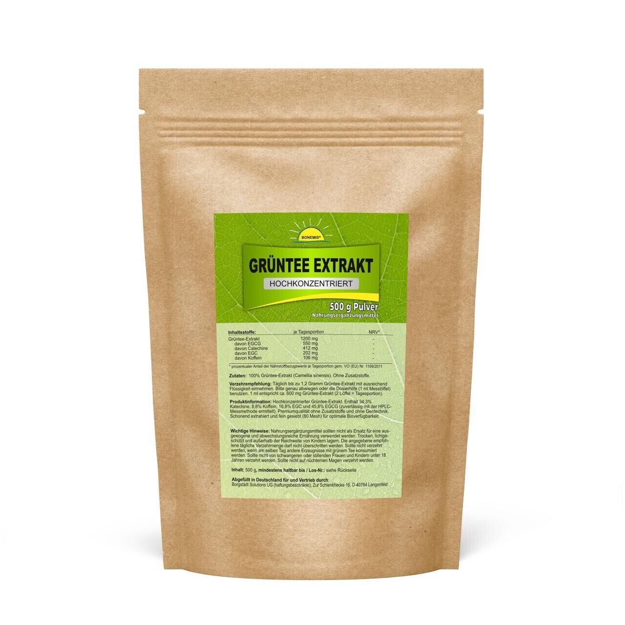 Grüntee Extrakt (hochkonzentriert, ohne Zusätze, 80 Mesh), 500g Pulver, Bonemis®