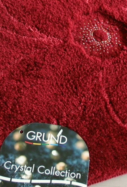 Grund Badteppich CHRYSTAL Flower Rot Edle Badematte mit fest eingebundener Kristall - Glas - Applikation Wir verkaufen hier Einzelteile Neuware zum günstigen Preis Badematte mit umkettelter Außenkante. Waschbar bei 40°C. Für Fußbodenheizungen geeignet. Rutschhemmende Beschichtung auf der Unterse