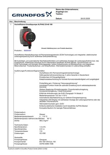 GRUNDFOS Grundfos ALPHA2 25-40 180 1x230V PK25/113