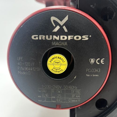 Grundfos Magna 40 - 120 F Heizungspumpe Artikelnummer: 96441213 Spannung: 1 x 230 Volt Frequenz: 50 Hz Leistung: 25 - 445 Watt Einbaulänge: 250 mm Zustand: gebraucht, Top Zustand Unsere Artikelnummer: P25 24 Sicherheitsprüfung nach VDE durchgeführt Neben der gesetzlichen Gewährleistung von 2 Jahren ... Mehr