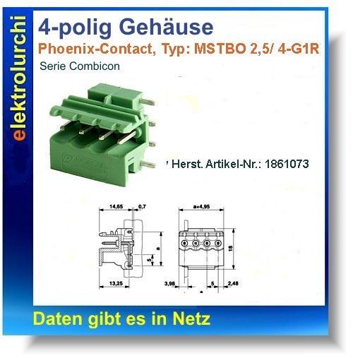 Phoenix Contact Grundleiste 4-polig, 12A, Phoenix Contact MSTBO 2,5/ 4-G1R - 1861073, 1St.