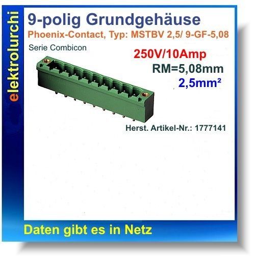 Grundteil 9-polig Phoenix Contact 250V/12A MSTBV 2,5/ 9-GF-5,08 Nr.1777141, 1St.