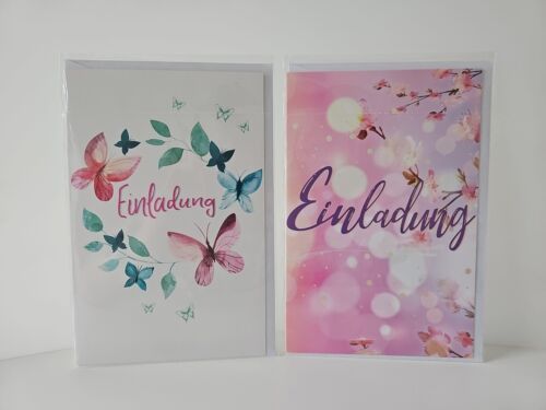 Einladungskarten (Klappkarte) verschiedene Motive Jede Klappkarte kommt mit einem passenden Umschlag und ist in einer praktischen Folie verpackt. Mit einer Größe von ca. 17,5 x 11,5 cm bieten sie ausreichend Platz für persönliche Botschaften. Details: Material: Papier Maße: ca. 17,5 x 11,5 cm Farbe: