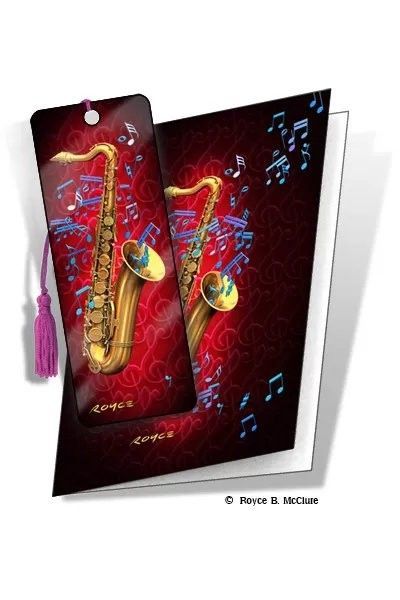 Grußkarte mit 3D Lesezeichen Saxophon - Saxophone
